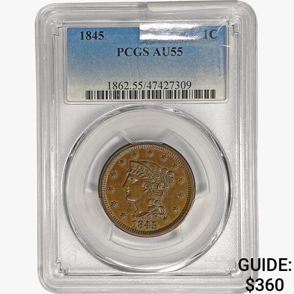 1845 Braided Hair Large Cent PCGS AU5542873a - 1845 Braided Hair Large Cent PCGS AU55