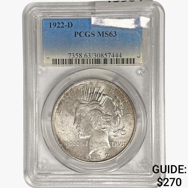 1922-D Silver Peace Dollar PCGS MS6342881a - 1922-D Silver Peace Dollar PCGS MS63