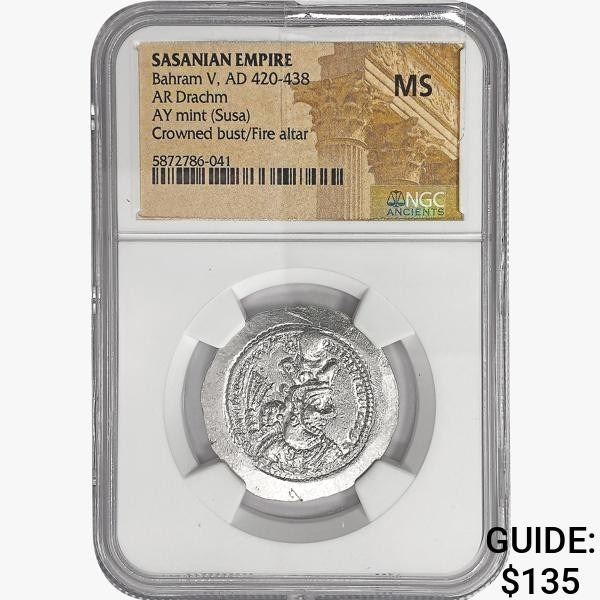 AD 420-438 Sasanian Empire AR Drachm NGC MS42889a - AD 420-438 Sasanian Empire AR Drachm NGC MS