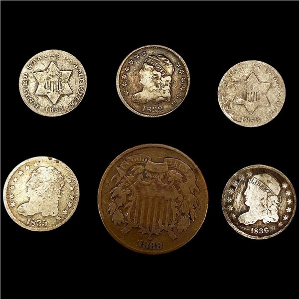 [6] Varied US Coinage (1832, 1835, 1836, 1851, 185
