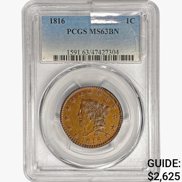 1816 Coronet Head Large Cent PCGS MS63 BN