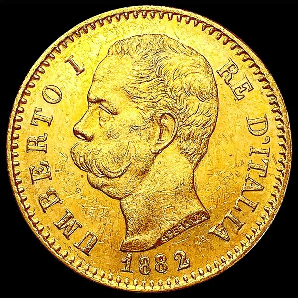 1882 Italy .1867oz Gold 20 Lire UNCIRCULATED