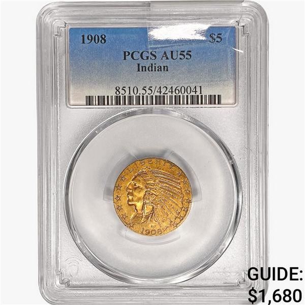 1908 $5 Gold Half Eagle PCGS AU55