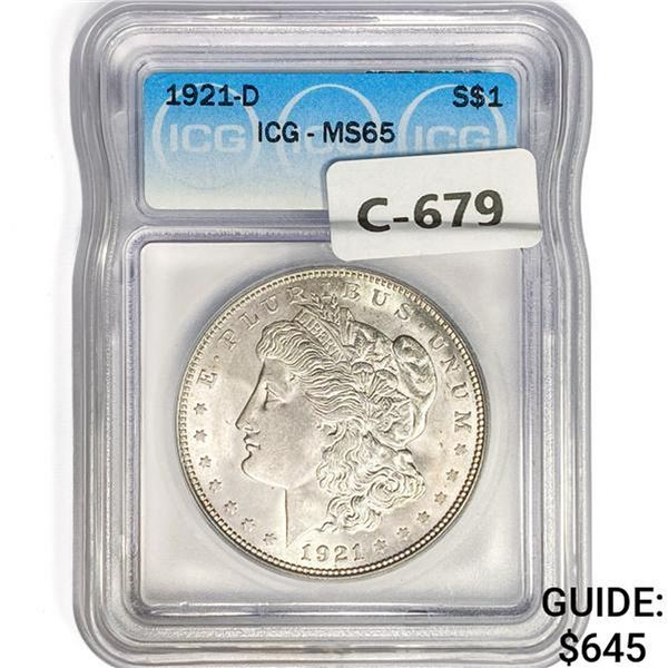 1921-D Morgan Silver Dollar ICG MS65