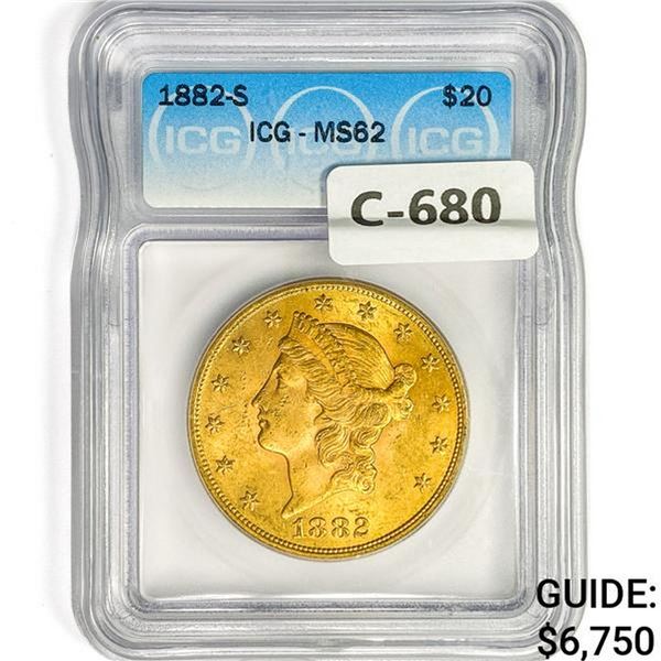 1882-S $20 Gold Double Eagle ICG MS62
