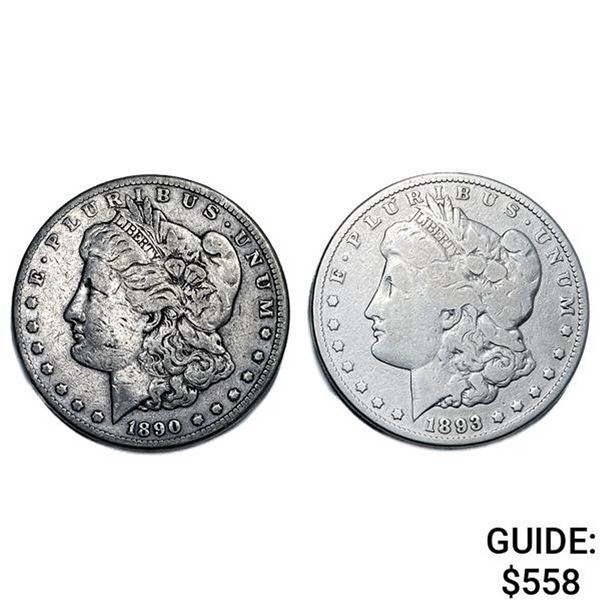 [2] Morgan Silver Dollars [1890-CC, 1893-CC]38806c - [2] Morgan Silver Dollars [1890-CC, 1893-CC]