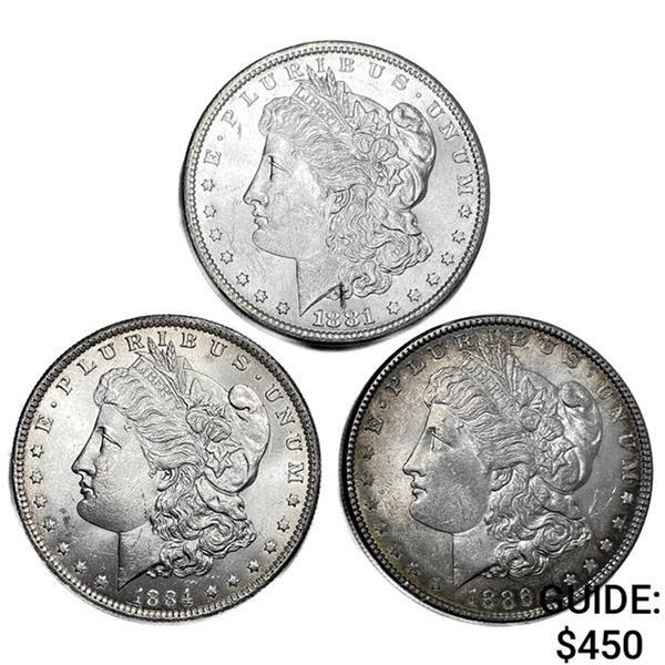 [3] Morgan Silver Dollars [1881-S, 1884-O, 1886]