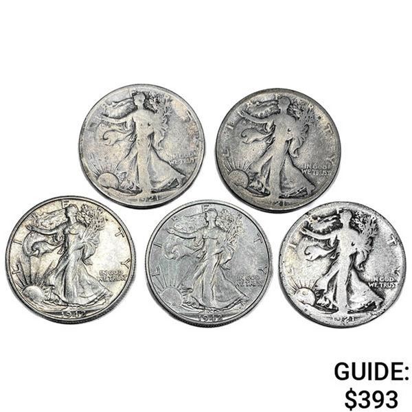 [5] Walking Half Dollars [[3] 1921-S, [2] 1942-S