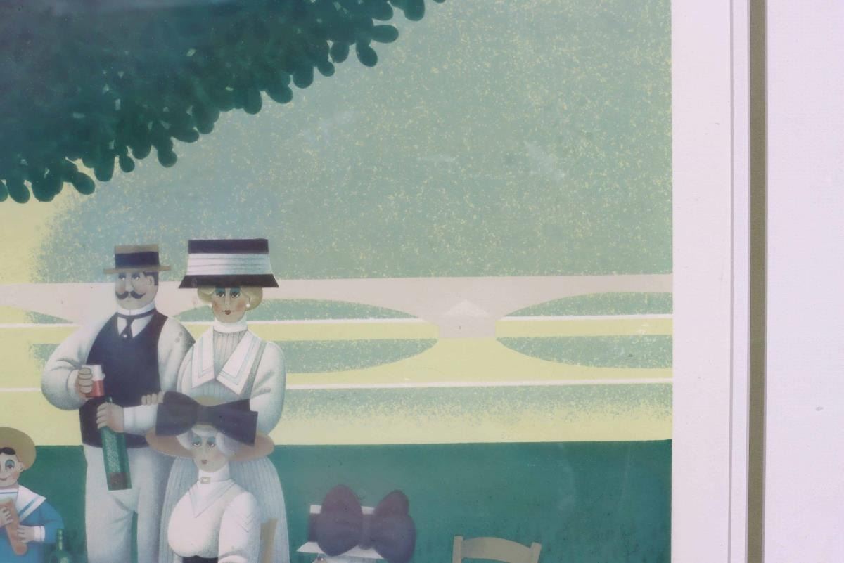 Signed in pencil. Picnic scene, Lithograph 55/300. Born in Bremen, Germany on July 20, 1913 he was schooled in Friedichshafen and Munich. He attended schools of arts and crafts in Munich and Berlin and spent several years at the Academy of Fine Arts in Munich. After traveling throughout Europe he left Germany in 1938 in protest to the Hitler regime and immigrated to New York City as a free-lance artist. While living in NYC he was the art director for Mademoiselle and Seventeen. He was also well-known for his illustrations in various magazines, including Vogue, Good Housekeeping, and House and Garden. n 1965 he moved back to Munich,Germany then La Landell, France. In 1978 he made his home in Estavayer-le-Lac, Switzerland where he continued to paint and produce masterful lithographs which are fancied all around the world. For the past thirty years he has had many successful expositions throughout Europe. He has also been cited in many publications and books including American Artist, Vogue, Schöner Wohnen, Masters of Naïve Art, and Die Naiven der Welt.