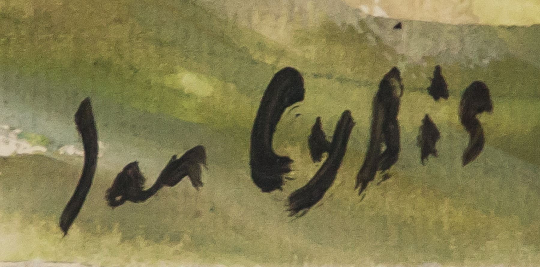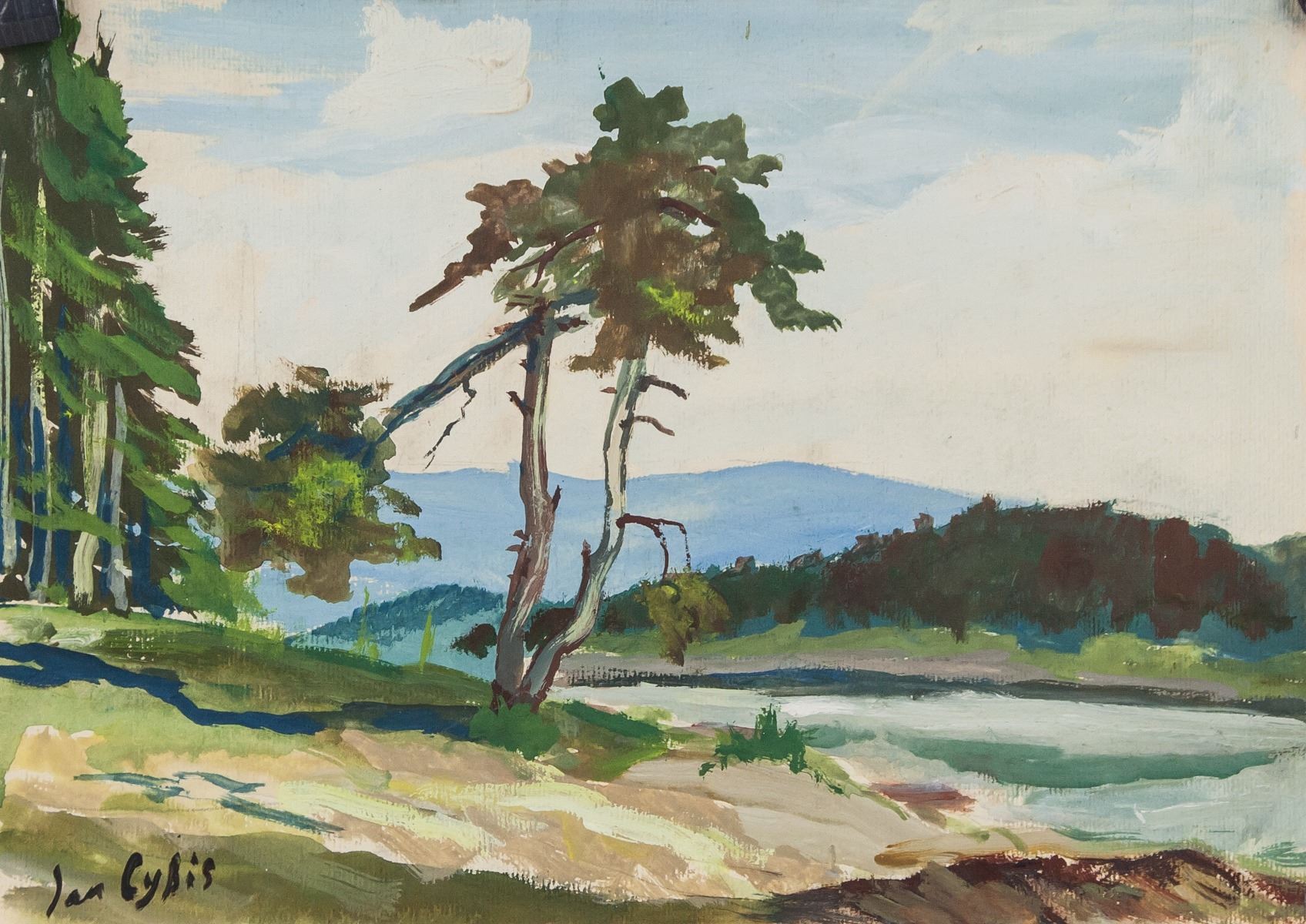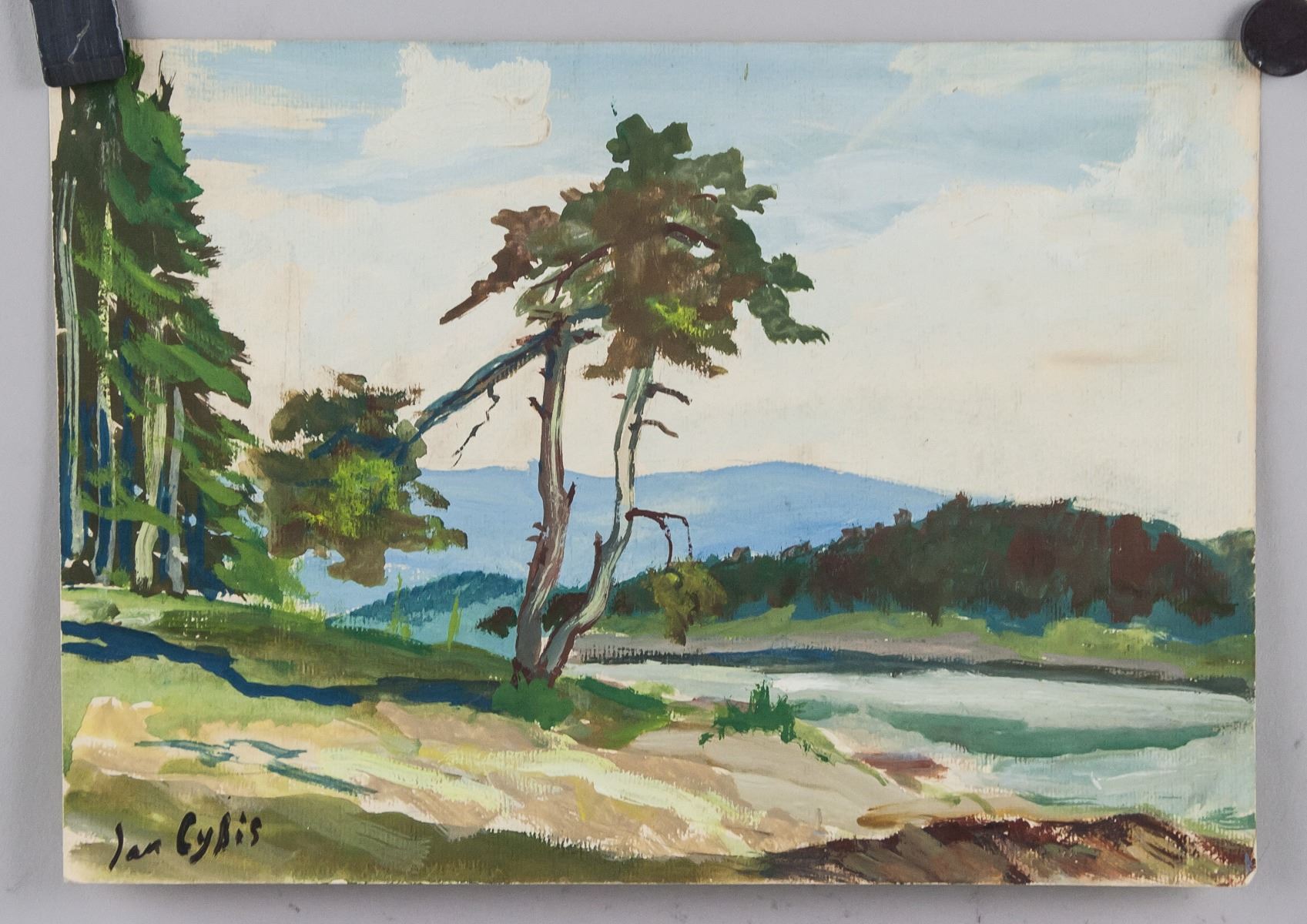 Oil on paper. Featuring a landscape scene. Signed Jan Cybis on the lower left corner. Inscribed in pencil with signature on the lower left corner of verso. Attributed to Jan Cybis (1897-1972, Polish). 20 x 27.5 cm (7.9 x 10.8 inches). PROVENANCE: Southern Ontario estate