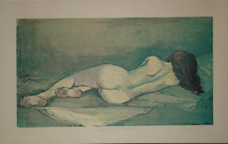 De Ruth (1922-1991) enjoyed special popularity as a portrait artist and has become one of the best known painters of the nude female in the world today. Large format 24x39 in. lithograph, signed by the artist and numbered 117 in an edition of 150 examples. Creased at top right edge in margin which will not show when framed. Unframed. Domestic shipping $20, international depends upon location.