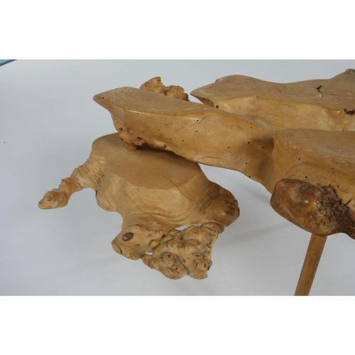 Artist Name: Jan De Swart<BR>Manufacturer: Custom<BR>Description: Burled wood articulating table<BR>Circa: executed circa 1960<BR>Medium: <BR>Signature: <BR>Measurements: 18"h x 42" x 26"<BR>Edition: <BR>Notes: <BR>Literature / Provenance: