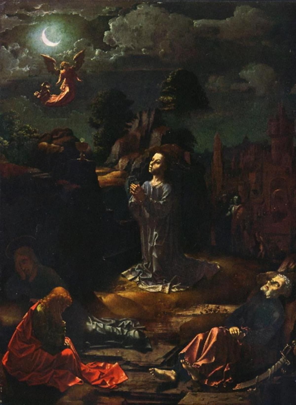 Artist:Jan Gossaert - Title: Christ at the Mount of Olives - Medium: Fine Art Giclee on Canvas - Image Size: Approximately 32 inches x 23.5 inches - Unframed on Unstretched Canvas - Biography: Jan Gossaert (c. 1478 - 1 October 1532) was a French-speaking painter from the Low Countrie. He was one of the first painters of Dutch and Flemish Renaissance painting to visit Italy and Rome, which he did in 1508-09, and a leader of the style known as Romanism, which brought elements of Italian Renaissance painting to the north, sometimes with a rather awkward effect. He achieved fame across at least northern Europe, and painted religious subjects, including large altarpieces, but also portraits and mythological subjects, including some nudity. He was a contemporary of Albrecht Dürer and the rather younger Lucas van Leyden, whom he knew, but he has tended to be less highly regarded in modern times than they were. Unlike them, he was not a printmaker, though his surviving drawings are very fine, and are preferred by some to his paintings.