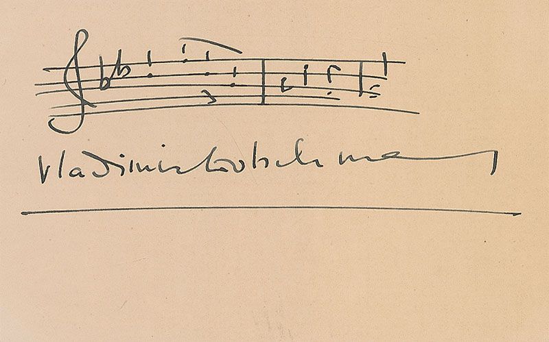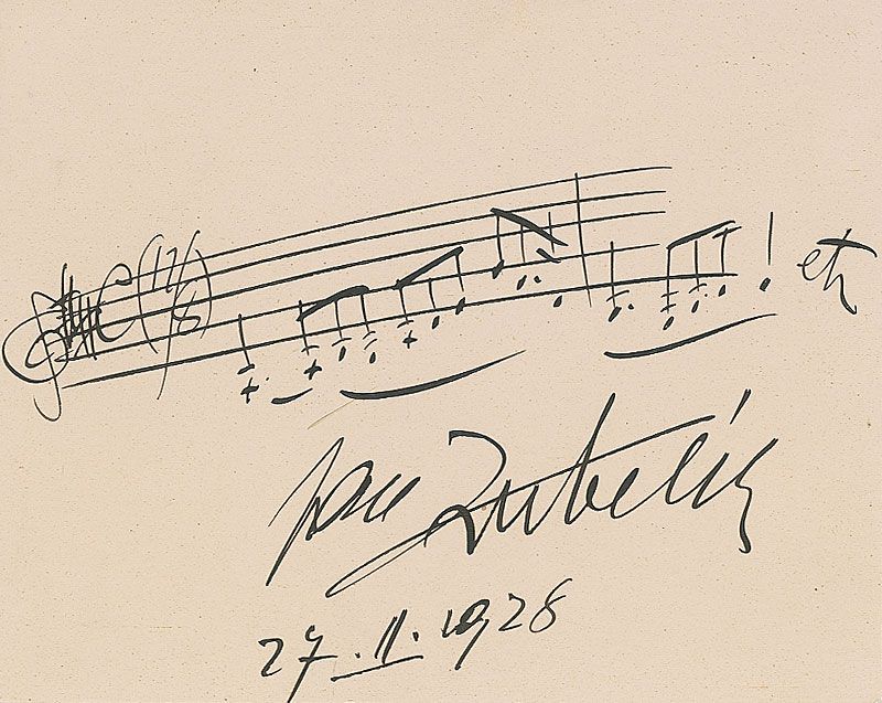 Two AMQSs: a two-bar quote from an unidentified work on a 6 x 5 off-white card, signed at the bottom, “Jan Kubelik 27.11.1928”; and a two-bar quote from an unidentified work on an off-white 5 x 3 card, signed underneath, “Vladimir Golschmann.” In fine condition.