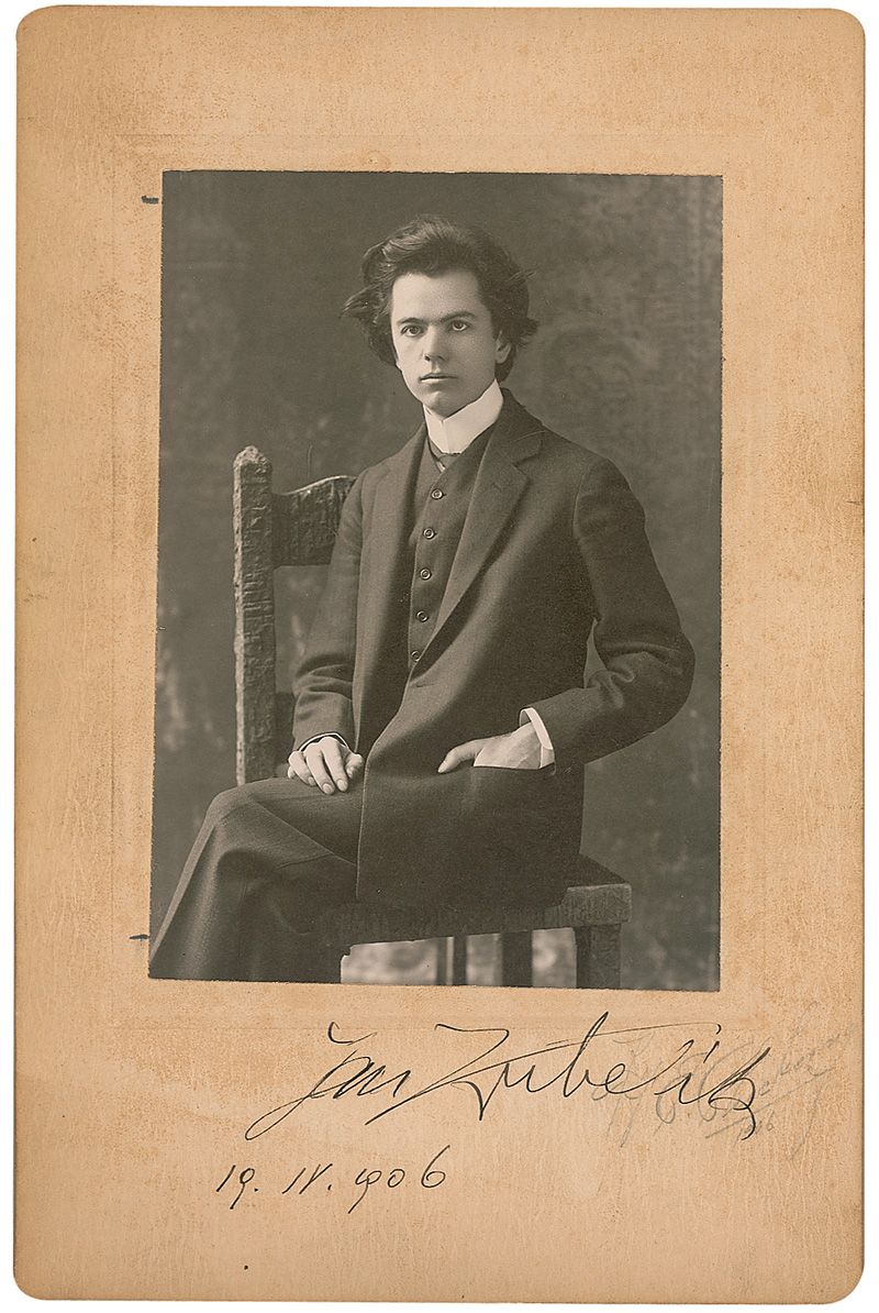 Vintage matte-finish 4 x 5.5 photo, affixed to its original 6 x 9 mount, signed in fountain pen on the mount, “Jan Kubelik, 19. IV. 1906.” In fine condition, with some soiling to the borders and light pencil signature under the end of Kubelik’s (perhaps from the photographer).
