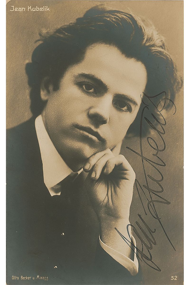 Vintage 3.25 x 5.25 real photo postcard of Kubelik, signed vertically in fountain pen. In fine condition, with a couple mild creases and slight silvering to dark areas of the image.