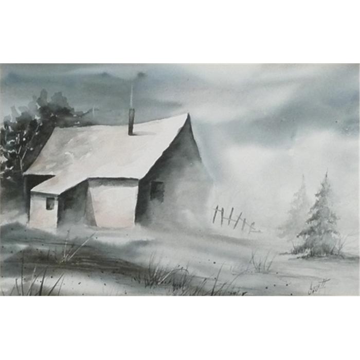 Jan Lovett Watercolor Homestead Signed lower right 8" x 12"