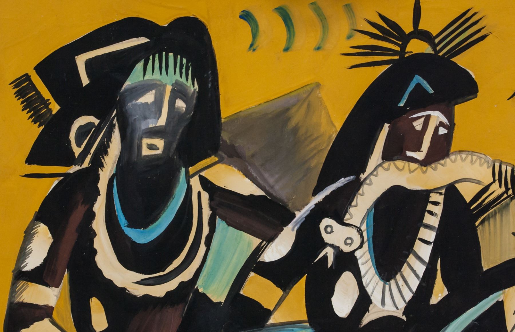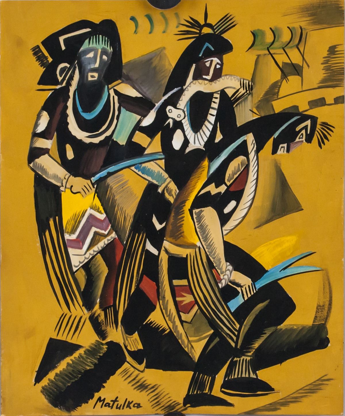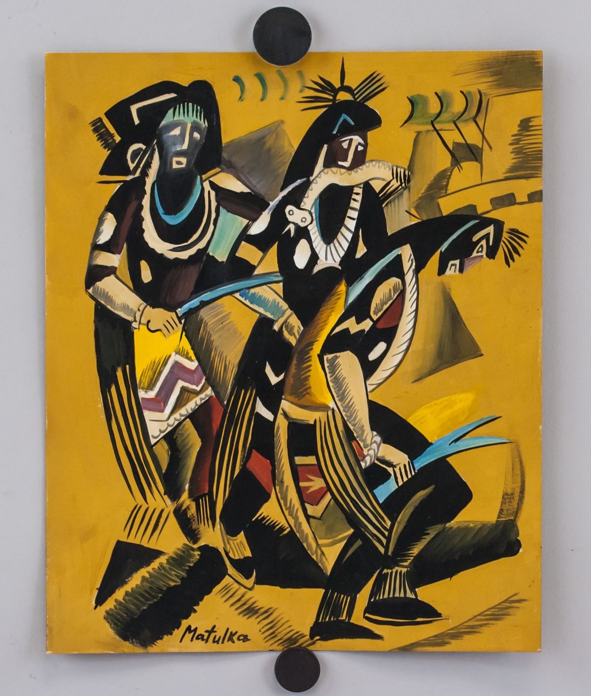 Gouache on paper. Featuring a modernist portrait of two figures. Signed Matulka on the lower left edge. Attributed to Jan Matilka (1890-1972, Czech-American). 25 x 24 cm (10 x 8 in). PROVENANCE: This lot carries limited provenance from a Southern Ontario estate