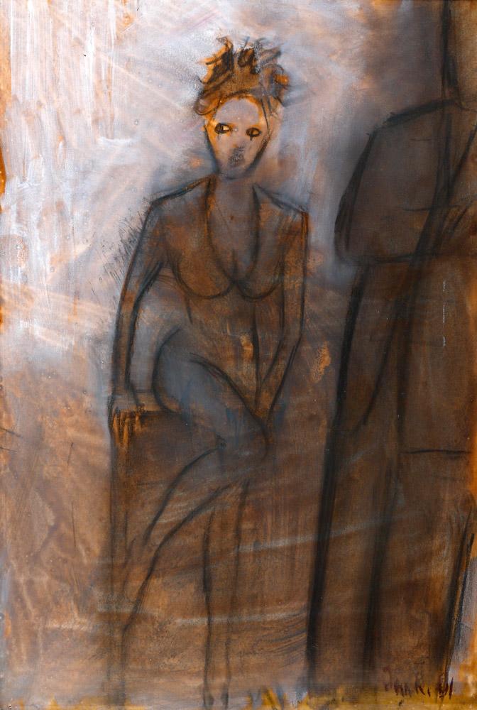Jan Rauchwarger, Israeli Art, B. 1942, Sitting Woman, 1991, Mixed media on paper, 34.5x22.5cm, , , , , ,