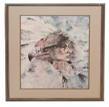 Signed color lithograph depicting the native eagle spirit. 23-1/2" x 18" (32" x 25-1/2")