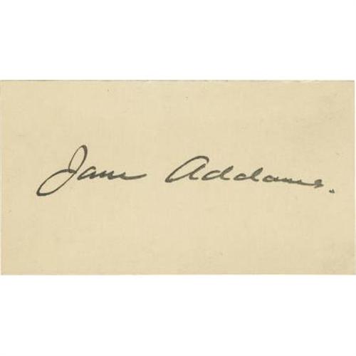 <B>Settlement House Movement Founder Jane Addams Signature</B></I> on a card, 3.5" x 2". Lightly soiled, otherwise very good. <I>From the collection of Henry E. Luhrs</B></I> <BR><BR><b>Shipping:</b> Flat Material, Small (<a target="_blank" href="http://www.heritageauctions.com/common/shipping.php">view shipping information</a>)