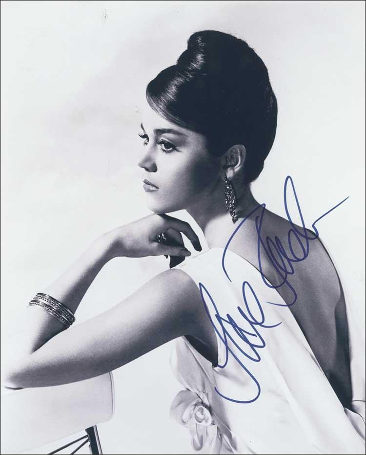 Glamorous 8 x 10 cardstock photo of the young Fonda, signed in-person in blue felt tip. In very fine condition. Pre-certified PSA/DNA and RRAuction COA.