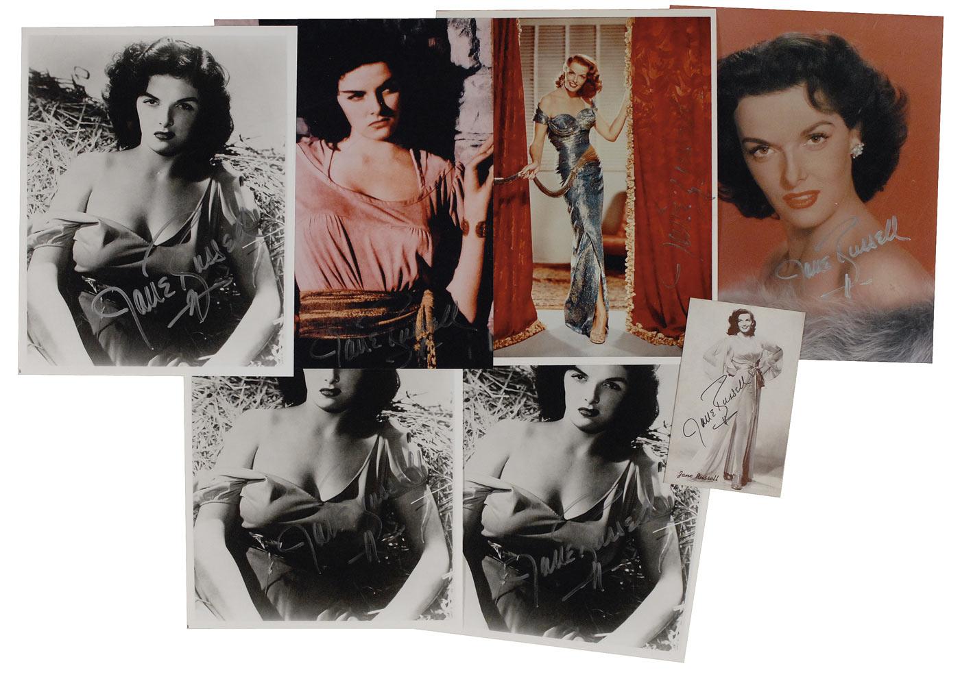 Seven items: six glossy 8 x 10 photos, three color, of Russell, each signed in silver ink; and a 3.5 x 5.5 arcade card signed in black felt tip. In overall fine condition.