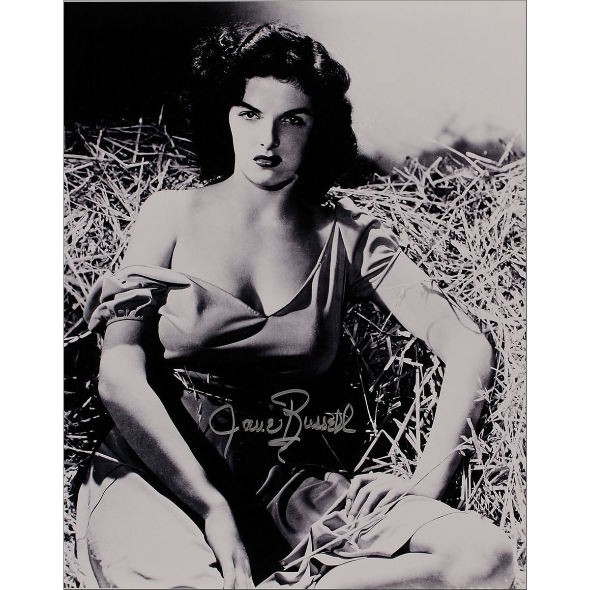 Timeless satin-finish 16 x 20 photo of Russell as she appeared in The Outlaw, signed in black felt tip. In very fine condition.