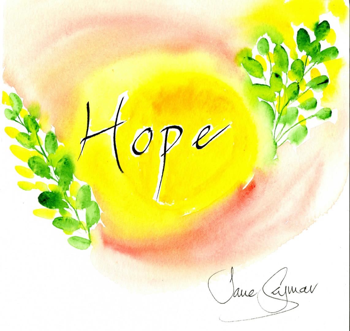 Watercolor with pen & ink on paper, signed lower right by Jane Seymour; 8 1/8 x 8 1/8" Created during the time of Covid to offer hope to the world
