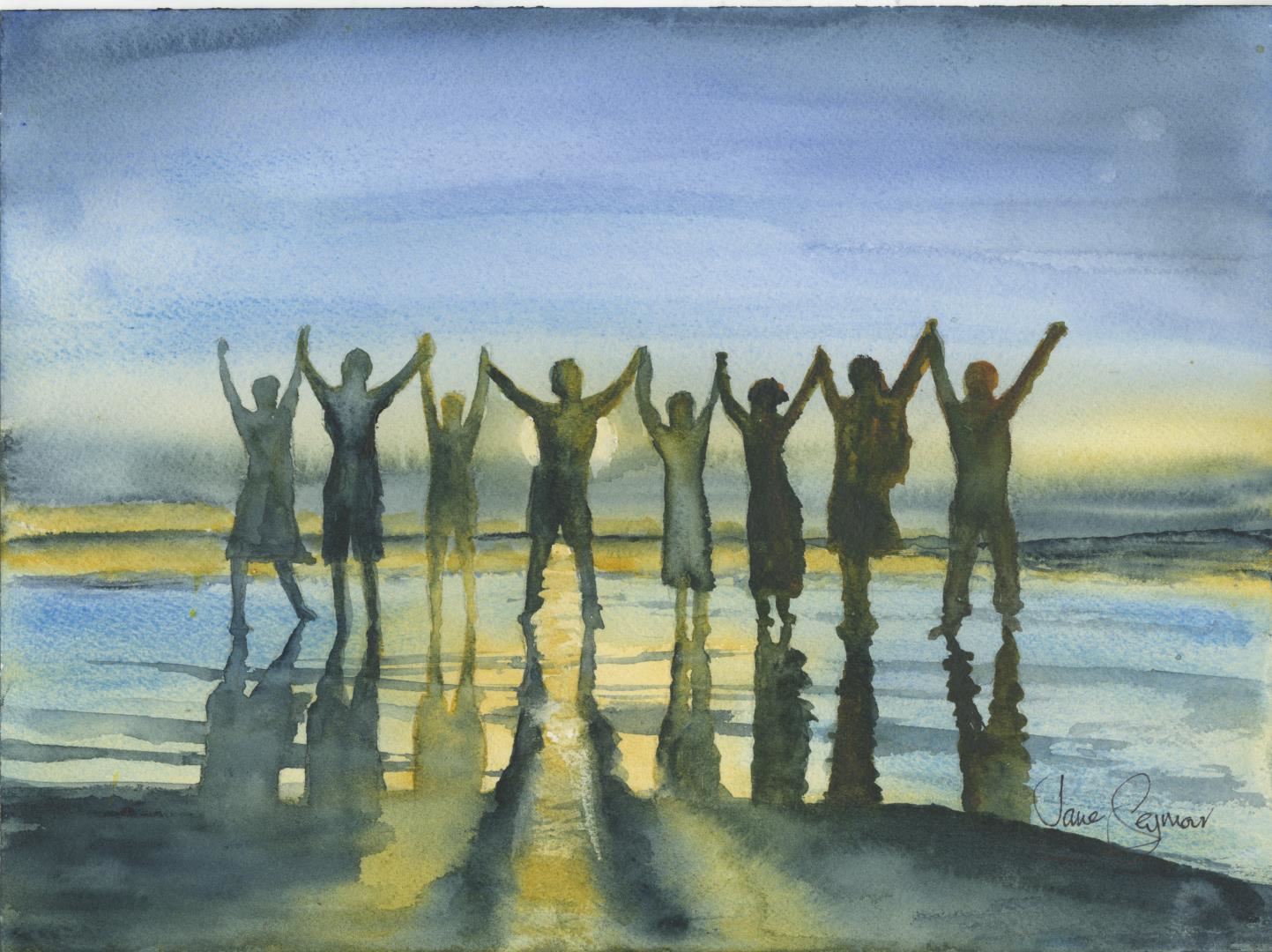 Watercolor on paper, signed lower right by Jane Seymour; 9 x 12" Created for celebrating the members of the open heart family movement around the world