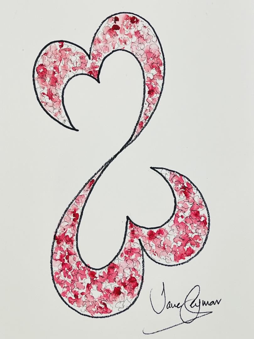 Watercolor on paper, signed lower right by Jane Seymour , 12 1/4 x 8 1/4" The Open Heart Icon design with flowers