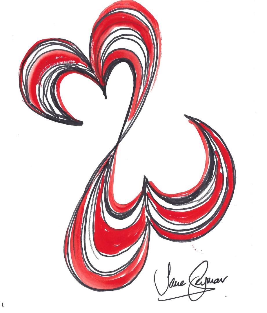 Watercolor on paper, signed lower right by Jane Seymour , 9 3/8 x 7 5/8" The Open Heart Icon design in a sculptural representation