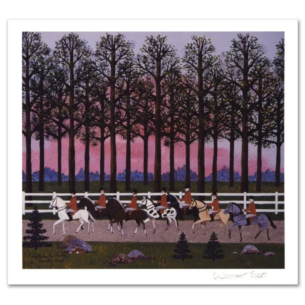 Cozy, down-home images of a bygone era when life was simpler - this is the feeling captured in the creations of one of the world's most recognized artists. "Foxy Gives 'Em The Slip" is a limited edition lithograph on paper, numbered and hand signed by Wooster Scott. Includes letter of authenticity. Measures approx. 14" x 12.5" (with border), 11.5" x 10.5" (image). Reference #: 187062.