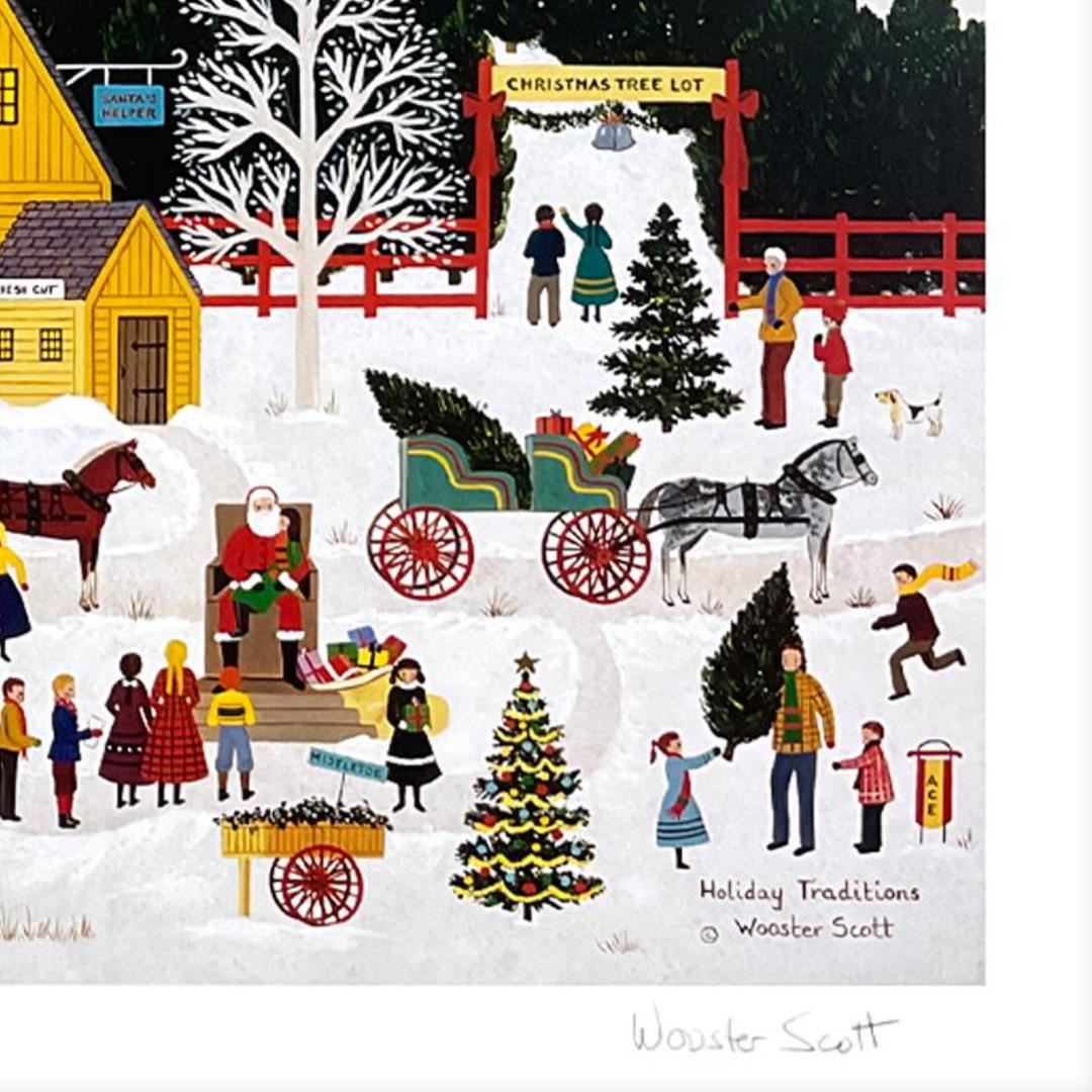 "Holiday Traditions" is a lithograph on paper, hand signed by Jane Wooster Scott. Includes Letter of Authenticity. This piece is not numbered. Measures approx. 25" x 31.5" (border), 20" x 25" (image). There may be minor imperfections in the white border area that may be concealed when framed.