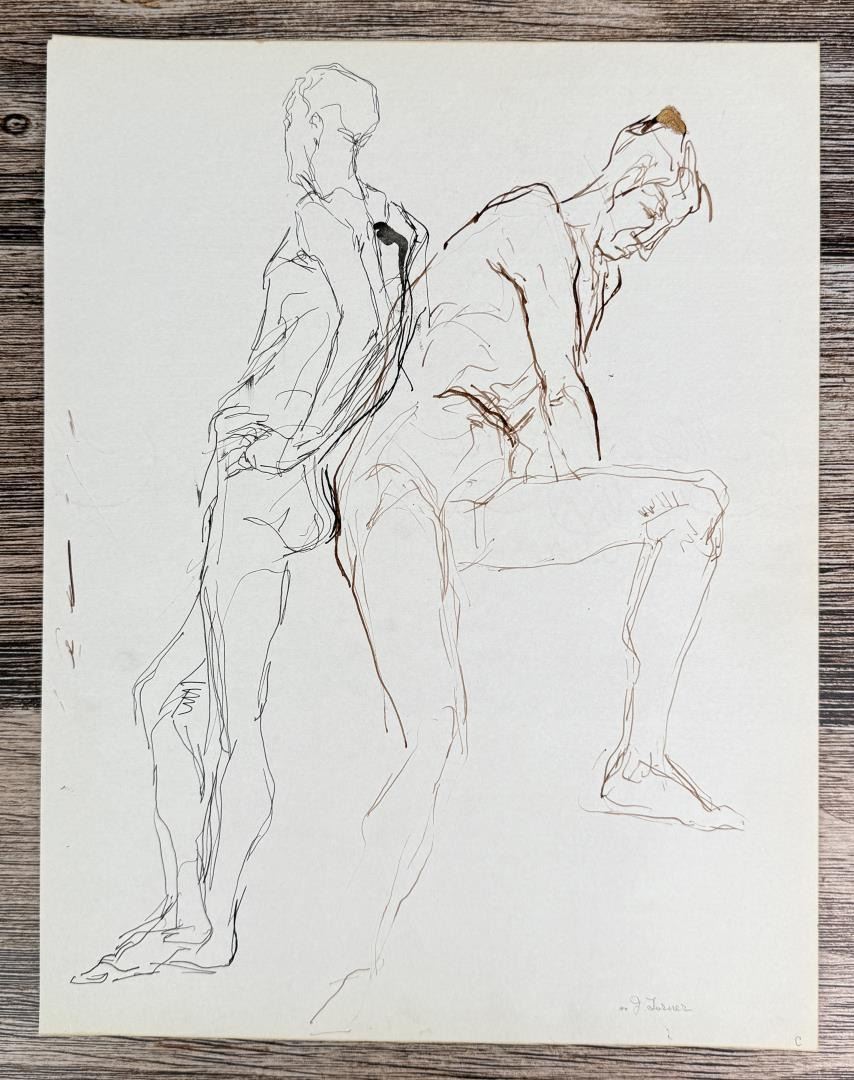 10 3/8" by 13 1/2". Janet Elizabeth Turner (1914 - 1988) was active/lived in California, Kansas. Janet Turner is known for Figure, genre, and landscape painter, printmaking. Janet Elizabeth Turner, primarily known as a graphic artist of Western subjects, though painting, as well, was born on April 7, 1914, in Kansas City, Missouri, growing up there. Her art studies got off to an uncertain start, when initially she studied biology at Stanford, changing her major to Far Eastern history when the University dropped the biology program in her junior year. Then she took some drawing courses in her senior year, graduating in 1936. Her real art education began when she studied painting with Regionalist artist Thomas Hart Benton from 1937-1941 at the Kansas City Art Institute. She also studied printmaking there with John DeMartelly. Her studies later continued at the Claremont Graduate School, California, with Henry McFee and Millard Sheets, resulting in her M.F.A. degree in 1947. She also studied silkscreen with Edward Landon. In 1952, Turner attended summer school at Columbia University Teachers College, receiving her Ph.D. in education in 1960, following additional study from 1956-1958. Once her art education finally got under way, it was clearly extensive. Turner's subjects included rural and small town settings in Kansas, Colorado, Missouri, and Texas and, after 1959, a strong emphasis on Western wildlife. Some works include Goats in Pinon Canyon; New Mexico Dwellings; Immature Golden Eagle; White Leghorns; Bulldogging Stock; Guinea Fowl, Among the Tule; and Dead Snow Goose. Turner taught at Girls Collegiate School, Claremont (1942-1947); Stephen F. Austin State College, Nacogdoches, TX (1947-1956); then, in 1959, California State University at Chico, continuing there until her retirement in 1983. She was named an "Outstanding Professor" in the California State University system in 1975. Jane Turner's work may be found in the collections of the Metropolitan Museum of Art, New York; Philadelphia Museum of Art, Pennsylvania; Cleveland Museum of Art, Ohio; San Francisco Museum of Art, California; Benzalei National Museum, Jerusalem; Bibliotheque Nationale, Paris; Victoria and Albert Museum, London; Society of Wildlife Art of the Nations, Gloucester, England; Portland Museum of Art, Oregon; William Rockhill Nelson-Atkins Museum of Art, Kansas City, Missouri; Dallas Museum of Art, Texas; and the National Museum of American Art and the Smithsonian Institution, both in Washington, DC. Turner first exhibited her work around 1937 in Kansas City as a student at the Art Institute. That started the ball rolling in a career that saw ultra-numerous exhibitions, including two hundred one-person shows of prints and paintings in forty of the United States, and in twenty-three cities in Japan and Israel. She would show her work in every state in the Union, and in fifty countries on six continents, including the Metropolitan Museum of Art's American Painting Today, in 1950, and their Watercolors and Prints, in 1952; the New York World's Fair, 1964-1965; print annuals and biennials at the National Academy of Design, New York City; American Color Print Society; Brooklyn Museum; Print Club of Philadelphia, and Society of American Graphic Artists. Janet Elizabeth Turner died June 27, 1988, in Chico, California.