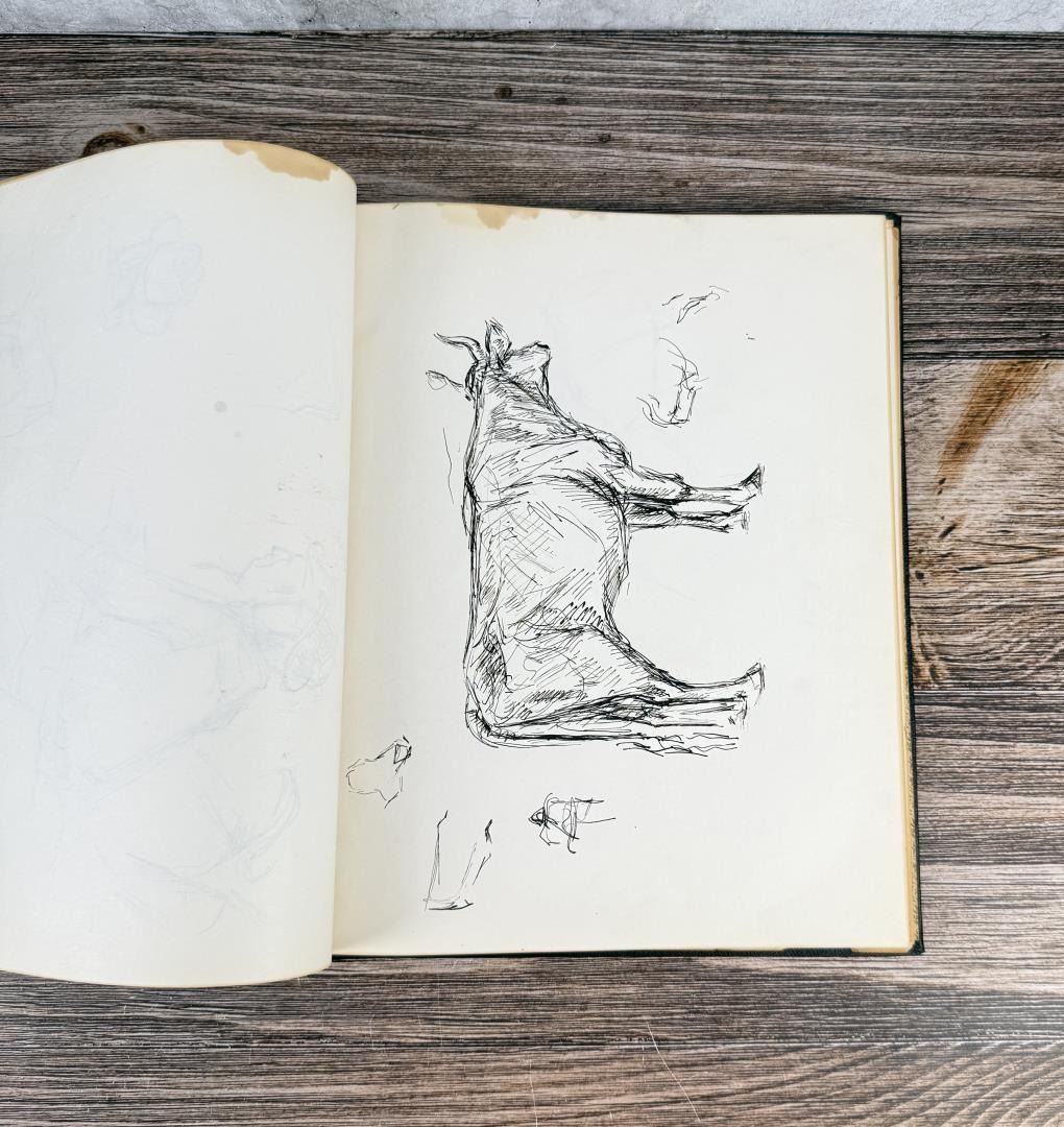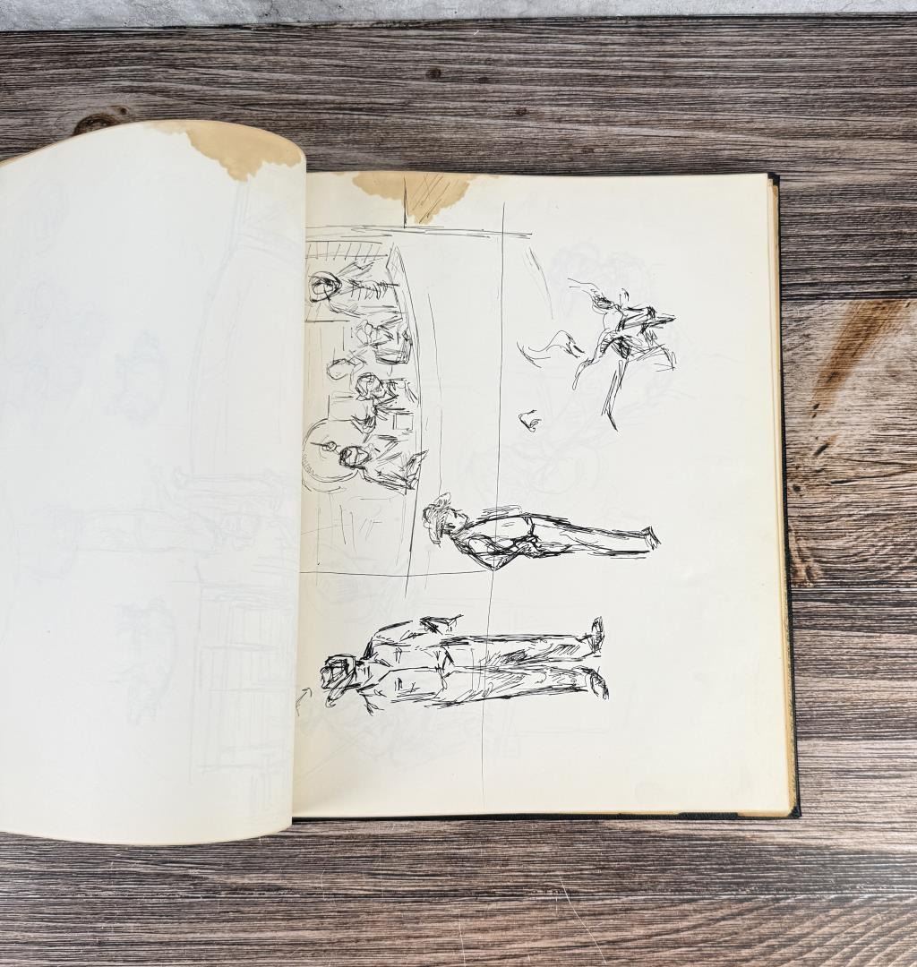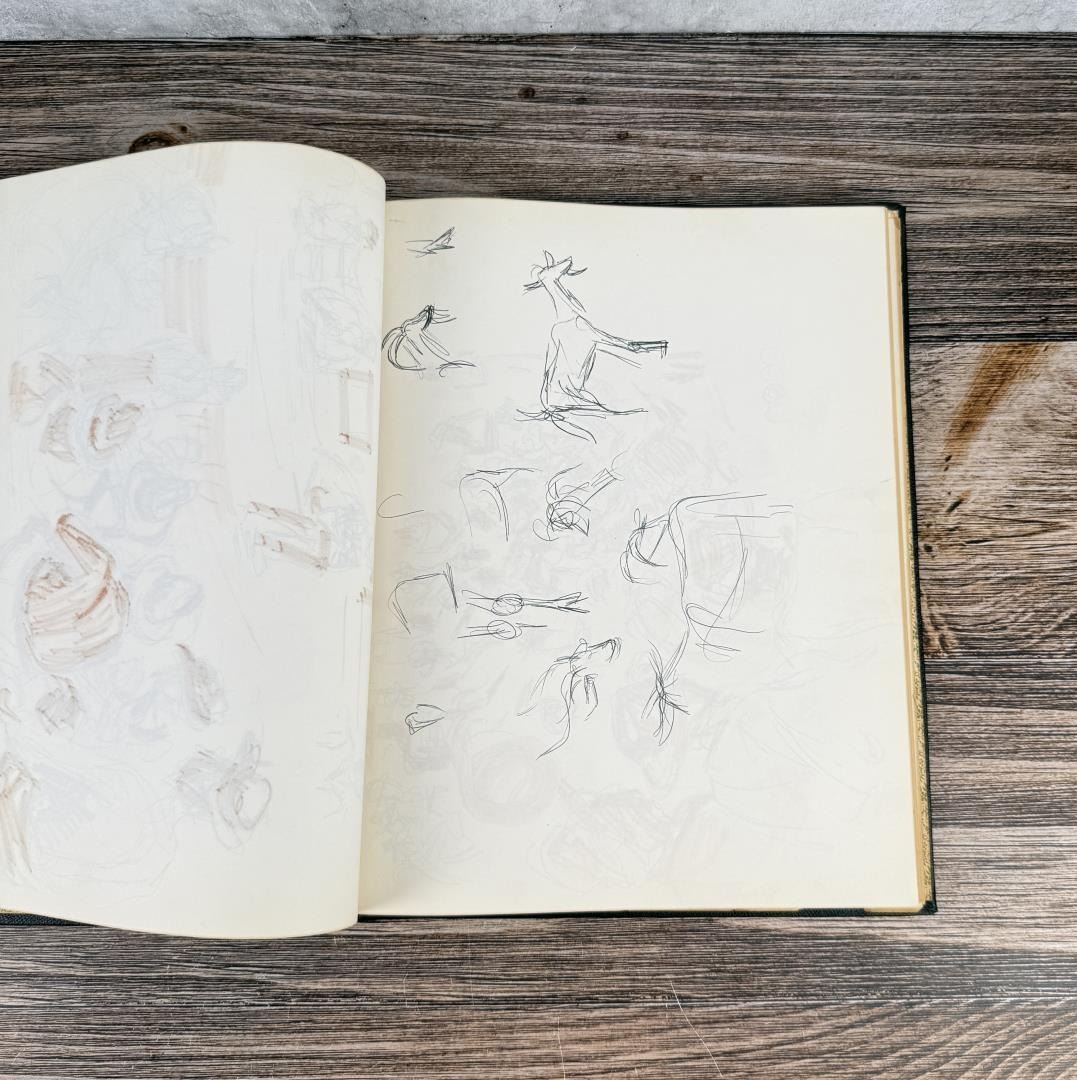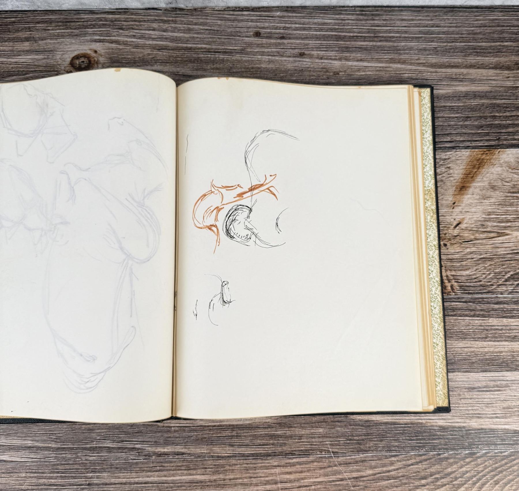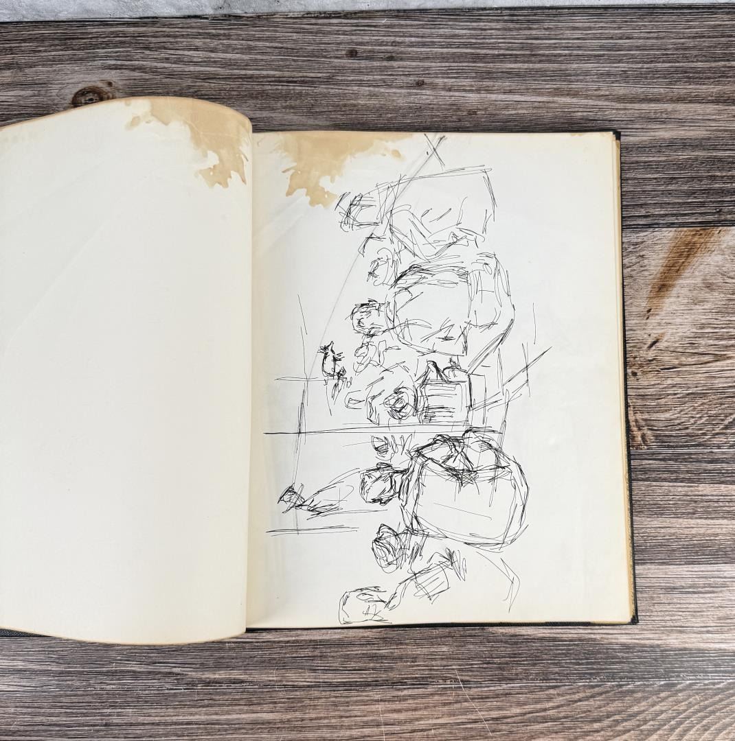 Very nice grouping including a full original Sketch Book. Janet Elizabeth Turner (1914 - 1988) was active/lived in California, Kansas. Janet Turner is known for Figure, genre, and landscape painter, printmaking. Janet Elizabeth Turner, primarily known as a graphic artist of Western subjects, though painting, as well, was born on April 7, 1914, in Kansas City, Missouri, growing up there. Her art studies got off to an uncertain start, when initially she studied biology at Stanford, changing her major to Far Eastern history when the University dropped the biology program in her junior year. Then she took some drawing courses in her senior year, graduating in 1936. Her real art education began when she studied painting with Regionalist artist Thomas Hart Benton from 1937-1941 at the Kansas City Art Institute. She also studied printmaking there with John DeMartelly. Her studies later continued at the Claremont Graduate School, California, with Henry McFee and Millard Sheets, resulting in her M.F.A. degree in 1947. She also studied silkscreen with Edward Landon. In 1952, Turner attended summer school at Columbia University Teachers College, receiving her Ph.D. in education in 1960, following additional study from 1956-1958. Once her art education finally got under way, it was clearly extensive. Turner's subjects included rural and small town settings in Kansas, Colorado, Missouri, and Texas and, after 1959, a strong emphasis on Western wildlife. Some works include Goats in Pinon Canyon; New Mexico Dwellings; Immature Golden Eagle; White Leghorns; Bulldogging Stock; Guinea Fowl, Among the Tule; and Dead Snow Goose. Turner taught at Girls Collegiate School, Claremont (1942-1947); Stephen F. Austin State College, Nacogdoches, TX (1947-1956); then, in 1959, California State University at Chico, continuing there until her retirement in 1983. She was named an "Outstanding Professor" in the California State University system in 1975. Jane Turner's work may be found in the collections of the Metropolitan Museum of Art, New York; Philadelphia Museum of Art, Pennsylvania; Cleveland Museum of Art, Ohio; San Francisco Museum of Art, California; Benzalei National Museum, Jerusalem; Bibliotheque Nationale, Paris; Victoria and Albert Museum, London; Society of Wildlife Art of the Nations, Gloucester, England; Portland Museum of Art, Oregon; William Rockhill Nelson-Atkins Museum of Art, Kansas City, Missouri; Dallas Museum of Art, Texas; and the National Museum of American Art and the Smithsonian Institution, both in Washington, DC. Turner first exhibited her work around 1937 in Kansas City as a student at the Art Institute. That started the ball rolling in a career that saw ultra-numerous exhibitions, including two hundred one-person shows of prints and paintings in forty of the United States, and in twenty-three cities in Japan and Israel. She would show her work in every state in the Union, and in fifty countries on six continents, including the Metropolitan Museum of Art's American Painting Today, in 1950, and their Watercolors and Prints, in 1952; the New York World's Fair, 1964-1965; print annuals and biennials at the National Academy of Design, New York City; American Color Print Society; Brooklyn Museum; Print Club of Philadelphia, and Society of American Graphic Artists. Janet Elizabeth Turner died June 27, 1988, in Chico, California.
