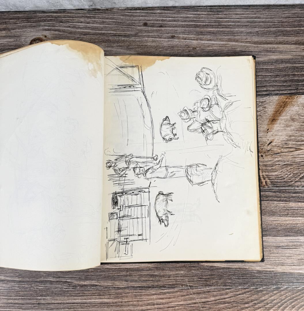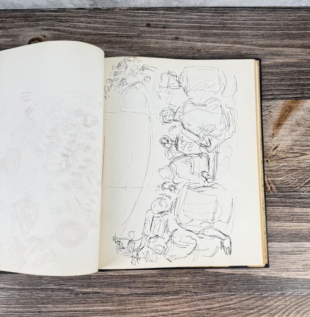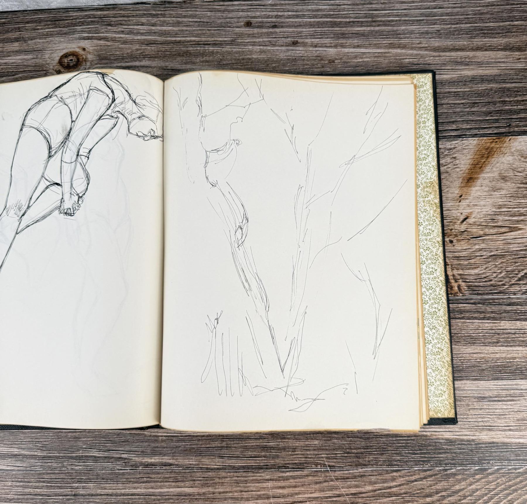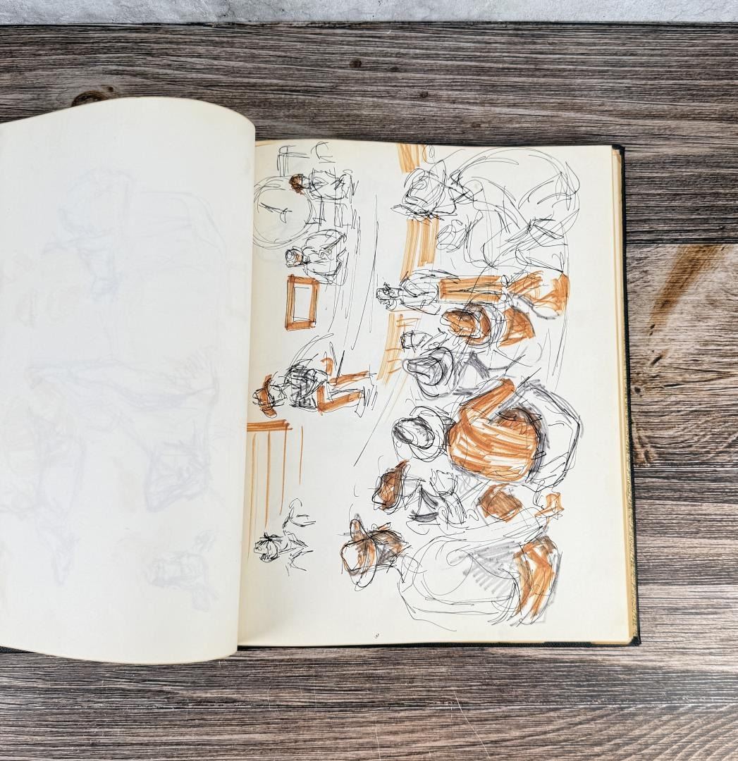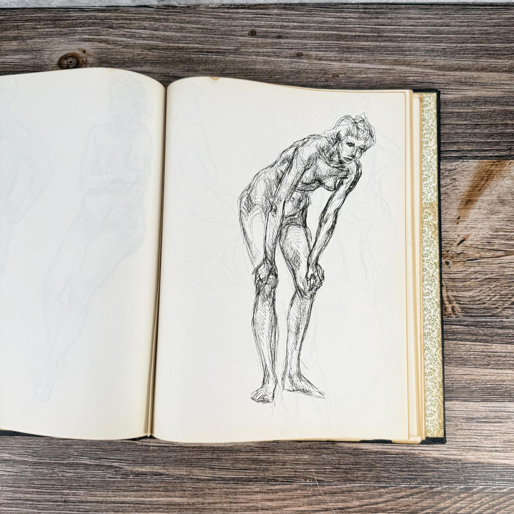 Very nice grouping including a full original Sketch Book. Janet Elizabeth Turner (1914 - 1988) was active/lived in California, Kansas. Janet Turner is known for Figure, genre, and landscape painter, printmaking. Janet Elizabeth Turner, primarily known as a graphic artist of Western subjects, though painting, as well, was born on April 7, 1914, in Kansas City, Missouri, growing up there. Her art studies got off to an uncertain start, when initially she studied biology at Stanford, changing her major to Far Eastern history when the University dropped the biology program in her junior year. Then she took some drawing courses in her senior year, graduating in 1936. Her real art education began when she studied painting with Regionalist artist Thomas Hart Benton from 1937-1941 at the Kansas City Art Institute. She also studied printmaking there with John DeMartelly. Her studies later continued at the Claremont Graduate School, California, with Henry McFee and Millard Sheets, resulting in her M.F.A. degree in 1947. She also studied silkscreen with Edward Landon. In 1952, Turner attended summer school at Columbia University Teachers College, receiving her Ph.D. in education in 1960, following additional study from 1956-1958. Once her art education finally got under way, it was clearly extensive. Turner's subjects included rural and small town settings in Kansas, Colorado, Missouri, and Texas and, after 1959, a strong emphasis on Western wildlife. Some works include Goats in Pinon Canyon; New Mexico Dwellings; Immature Golden Eagle; White Leghorns; Bulldogging Stock; Guinea Fowl, Among the Tule; and Dead Snow Goose. Turner taught at Girls Collegiate School, Claremont (1942-1947); Stephen F. Austin State College, Nacogdoches, TX (1947-1956); then, in 1959, California State University at Chico, continuing there until her retirement in 1983. She was named an "Outstanding Professor" in the California State University system in 1975. Jane Turner's work may be found in the collections of the Metropolitan Museum of Art, New York; Philadelphia Museum of Art, Pennsylvania; Cleveland Museum of Art, Ohio; San Francisco Museum of Art, California; Benzalei National Museum, Jerusalem; Bibliotheque Nationale, Paris; Victoria and Albert Museum, London; Society of Wildlife Art of the Nations, Gloucester, England; Portland Museum of Art, Oregon; William Rockhill Nelson-Atkins Museum of Art, Kansas City, Missouri; Dallas Museum of Art, Texas; and the National Museum of American Art and the Smithsonian Institution, both in Washington, DC. Turner first exhibited her work around 1937 in Kansas City as a student at the Art Institute. That started the ball rolling in a career that saw ultra-numerous exhibitions, including two hundred one-person shows of prints and paintings in forty of the United States, and in twenty-three cities in Japan and Israel. She would show her work in every state in the Union, and in fifty countries on six continents, including the Metropolitan Museum of Art's American Painting Today, in 1950, and their Watercolors and Prints, in 1952; the New York World's Fair, 1964-1965; print annuals and biennials at the National Academy of Design, New York City; American Color Print Society; Brooklyn Museum; Print Club of Philadelphia, and Society of American Graphic Artists. Janet Elizabeth Turner died June 27, 1988, in Chico, California.