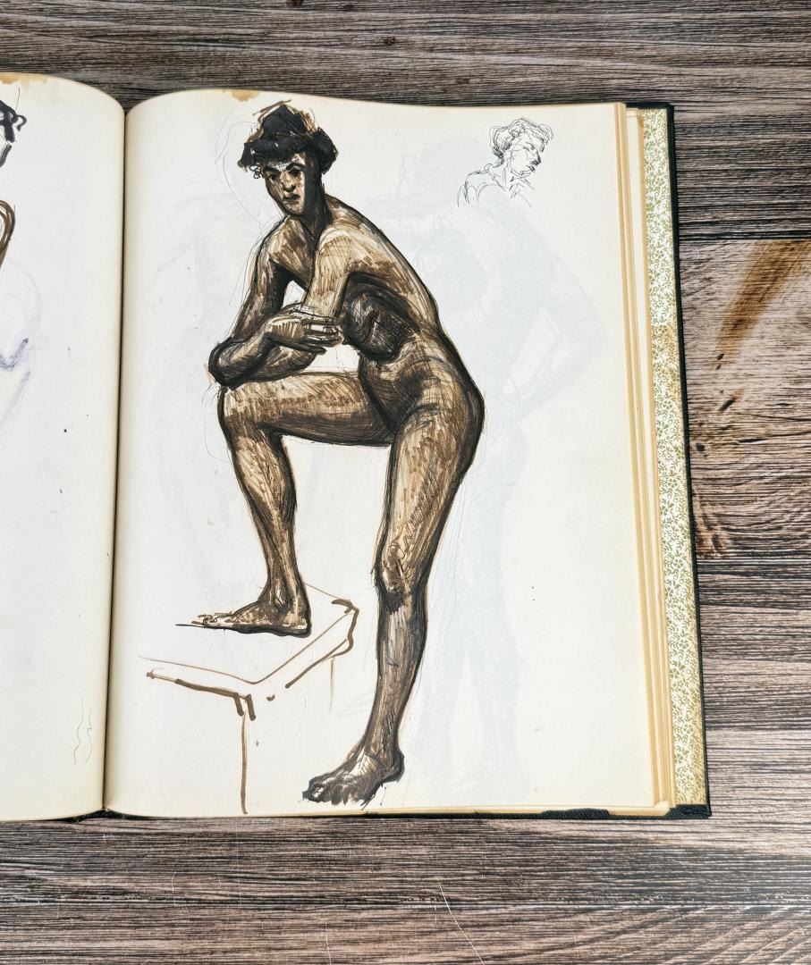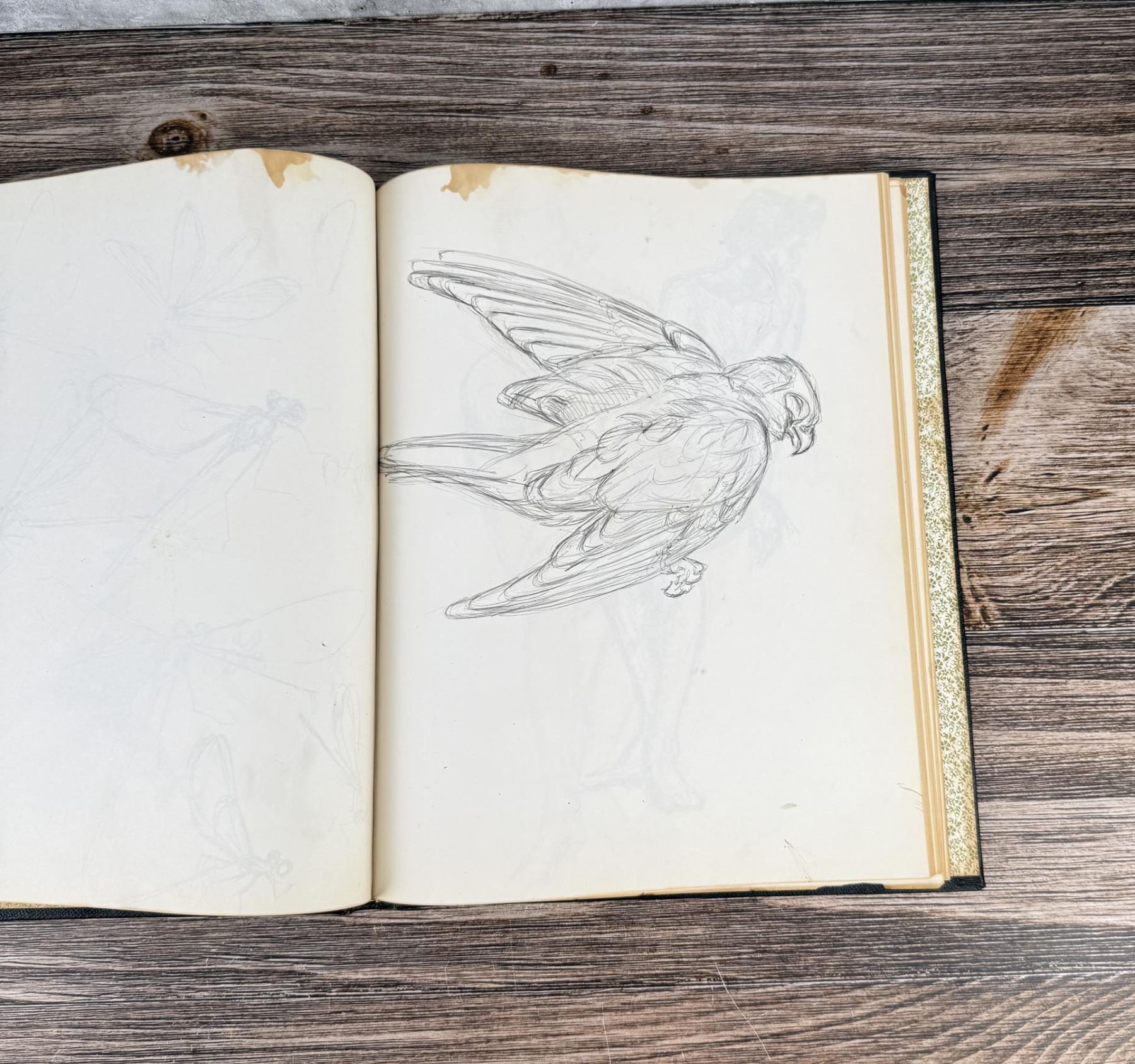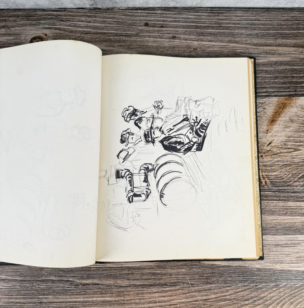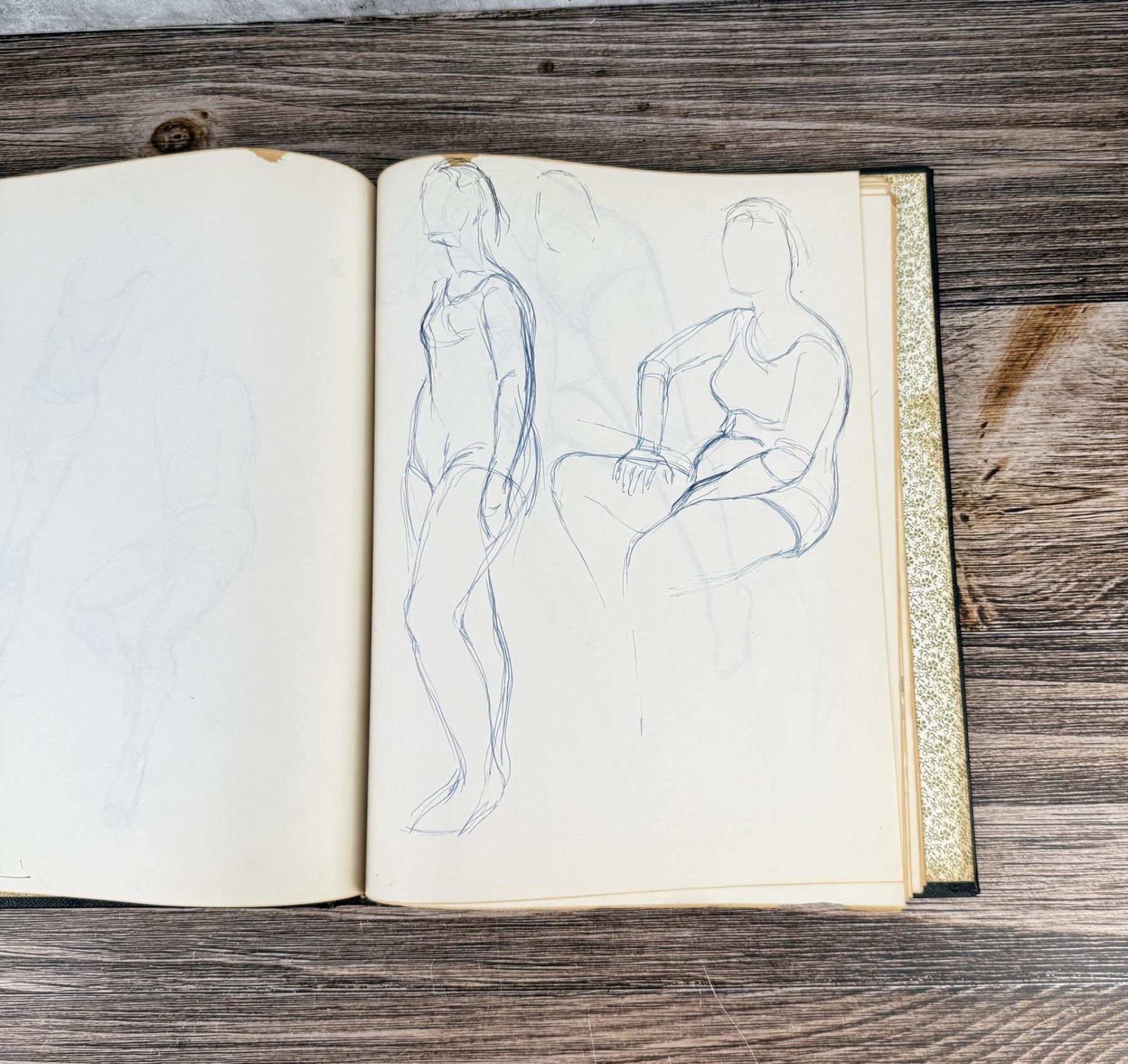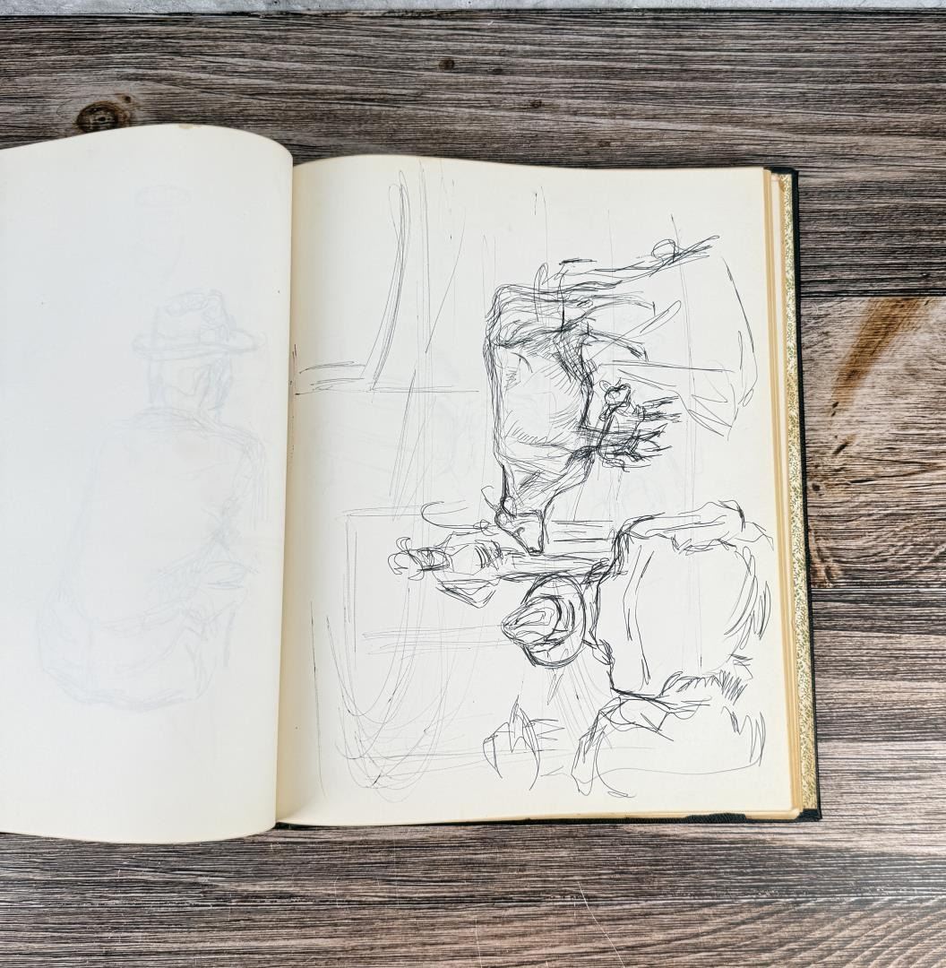 Very nice grouping including a full original Sketch Book. Janet Elizabeth Turner (1914 - 1988) was active/lived in California, Kansas. Janet Turner is known for Figure, genre, and landscape painter, printmaking. Janet Elizabeth Turner, primarily known as a graphic artist of Western subjects, though painting, as well, was born on April 7, 1914, in Kansas City, Missouri, growing up there. Her art studies got off to an uncertain start, when initially she studied biology at Stanford, changing her major to Far Eastern history when the University dropped the biology program in her junior year. Then she took some drawing courses in her senior year, graduating in 1936. Her real art education began when she studied painting with Regionalist artist Thomas Hart Benton from 1937-1941 at the Kansas City Art Institute. She also studied printmaking there with John DeMartelly. Her studies later continued at the Claremont Graduate School, California, with Henry McFee and Millard Sheets, resulting in her M.F.A. degree in 1947. She also studied silkscreen with Edward Landon. In 1952, Turner attended summer school at Columbia University Teachers College, receiving her Ph.D. in education in 1960, following additional study from 1956-1958. Once her art education finally got under way, it was clearly extensive. Turner's subjects included rural and small town settings in Kansas, Colorado, Missouri, and Texas and, after 1959, a strong emphasis on Western wildlife. Some works include Goats in Pinon Canyon; New Mexico Dwellings; Immature Golden Eagle; White Leghorns; Bulldogging Stock; Guinea Fowl, Among the Tule; and Dead Snow Goose. Turner taught at Girls Collegiate School, Claremont (1942-1947); Stephen F. Austin State College, Nacogdoches, TX (1947-1956); then, in 1959, California State University at Chico, continuing there until her retirement in 1983. She was named an "Outstanding Professor" in the California State University system in 1975. Jane Turner's work may be found in the collections of the Metropolitan Museum of Art, New York; Philadelphia Museum of Art, Pennsylvania; Cleveland Museum of Art, Ohio; San Francisco Museum of Art, California; Benzalei National Museum, Jerusalem; Bibliotheque Nationale, Paris; Victoria and Albert Museum, London; Society of Wildlife Art of the Nations, Gloucester, England; Portland Museum of Art, Oregon; William Rockhill Nelson-Atkins Museum of Art, Kansas City, Missouri; Dallas Museum of Art, Texas; and the National Museum of American Art and the Smithsonian Institution, both in Washington, DC. Turner first exhibited her work around 1937 in Kansas City as a student at the Art Institute. That started the ball rolling in a career that saw ultra-numerous exhibitions, including two hundred one-person shows of prints and paintings in forty of the United States, and in twenty-three cities in Japan and Israel. She would show her work in every state in the Union, and in fifty countries on six continents, including the Metropolitan Museum of Art's American Painting Today, in 1950, and their Watercolors and Prints, in 1952; the New York World's Fair, 1964-1965; print annuals and biennials at the National Academy of Design, New York City; American Color Print Society; Brooklyn Museum; Print Club of Philadelphia, and Society of American Graphic Artists. Janet Elizabeth Turner died June 27, 1988, in Chico, California.