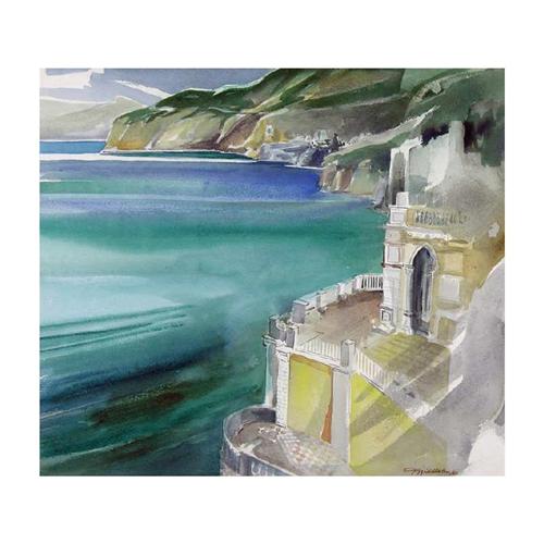 Canadian ASA, CPE [b. 1922] MEDITERRANEAN VISTA watercolour on paper 21.25 x 24.25 in. (54 x 61.6 cm) signed