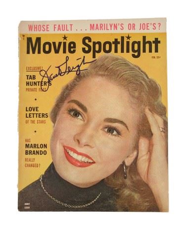 Janet Leigh Signed Movie Spotlight Magazine February 1955. Includes COA.
