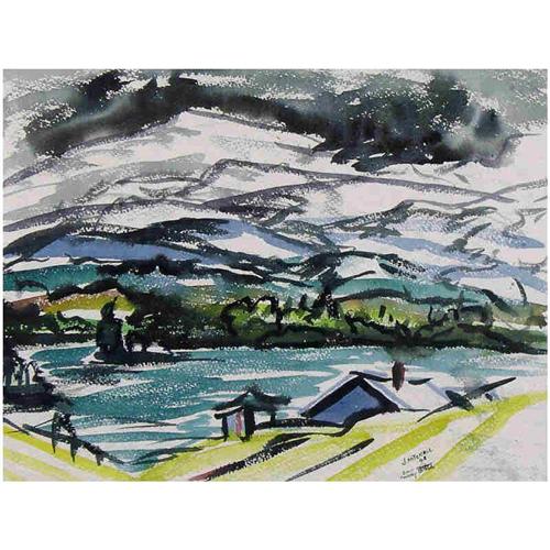 Canadian ASA, CSPWC, RCA [1912-1998] GHOST COUNTRY; 1948 watercolour on paper 13x 17 in. (33 x 43.2 cm) signed, titled & dated