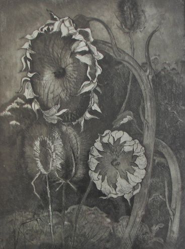 , (2329-4-6) Janet Sorenson, Limited Edition Etching, Of Sunflowers, Image 11 7/8" X 8 7/8", Sheet 16" X 11" Signed Lower Right, 1975, Numbered 18/20