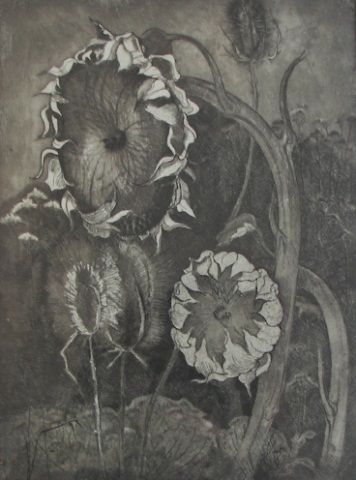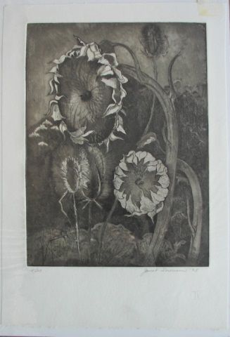 Janet Sorensen, Etching , (2329-4-6) Janet Sorenson, Limited Edition Etching, Of Sunflowers, Image 11 7/8" X 8 7/8", Sheet 16" X 11" Signed Lower Right, 1975, Numbered 18/20