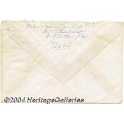 <B>Janis Joplin Envelope Addressed and Sent to Peter De Blanc; Signed in Full On Back.</B></I> Written entirely in Ms. Joplin's hand and addressed to boyfriend Peter De Blanc from her Port Arthur home, this transmission envelope is postmarked 9/24/65. On the back of the envelope, the singer has written in beautifully clear handwriting, "Miss Janis Lyn Joplin... 3130 Lombardy... Port Arthur, Tex... 77642." This is one of the nicest Janis Joplin signatures you will ever find. <BR><BR><B>Important notice:</B> Heritage usually auctions material at the rate of 200-250 lots per hour. On some occasions eBay Live bid software or the Internet may not be able to keep up with the pace of the auction. We recommend placing a realistic absentee bid now as insurance to avoid disappointment. Occasionally the auctioneer may eliminate or reject an eBay Live bid, and the auctioneer may also reopen a lot after the close of the eBay live bidding (usually because we missed an audience bid), and may reject your bid even if it shows you as the winning bidder. By bidding via eBay Live, you agree that Heritage may award the lot to another bidder at its sole discretion under the circumstances described above or any other reasonable circumstances. Since eBay bids are not shown to us until we open the lot on the floor, we treat those bids just like floor bids. In most cases the floor responds before the eBay bid is presented to us, due to Internet lag time, so for consistency we have made it a policy that floor bids are always considered first over tie eBay live bids. Also please note that all Heritage lots purchased through eBay Live carry a 24.5% Buyer's Premium. Please make sure you read the Terms and Conditions before you bid.