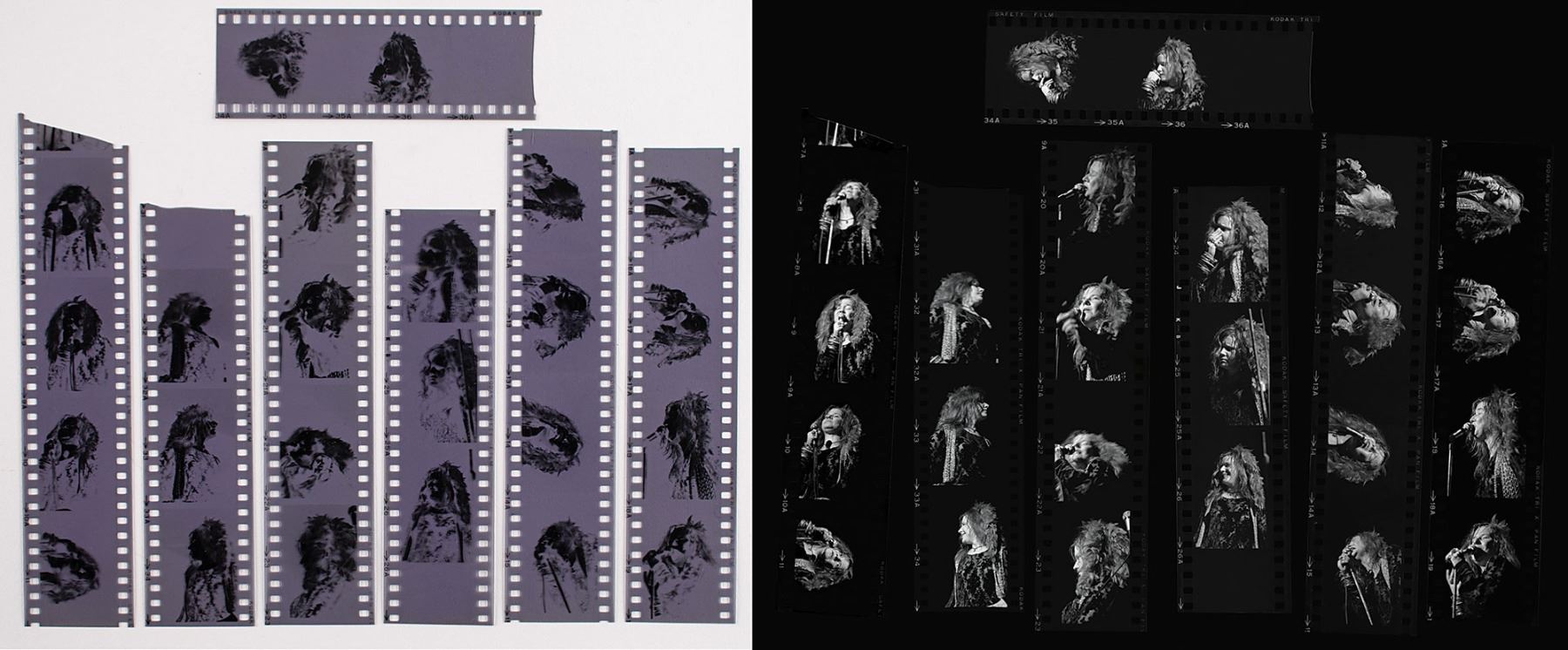 Amazing archive of original photographs and negatives from Janis Joplin’s final public performance, taken by photographer Peter Warrack at Harvard Stadium on August 12, 1970, which is highlighted by a set of seven strips of original negatives from the shows, containing a total of 24 amazing images of Joplin performing on stage; as featured by Rolling Stone magazine, these images were published in 2015, but previously were unknown and never-before-seen. Images from this show are extremely rare and only a few other single images are known to exist. The negatives, which are housed in their original sleeve annotated as “27a, Janis” by Warrack, include a full transfer of copyright for all of the Joplin negative images; copyright is not transferred for anything else within the archive.
