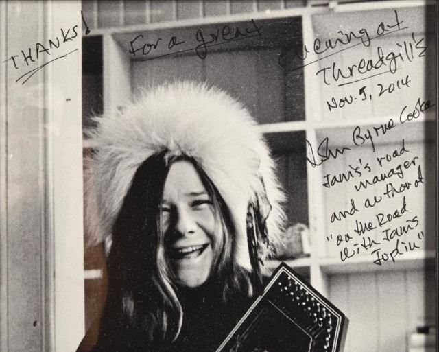Inscribed to Threadgill's from Janis Joplin's road manager, John Cook 2014.