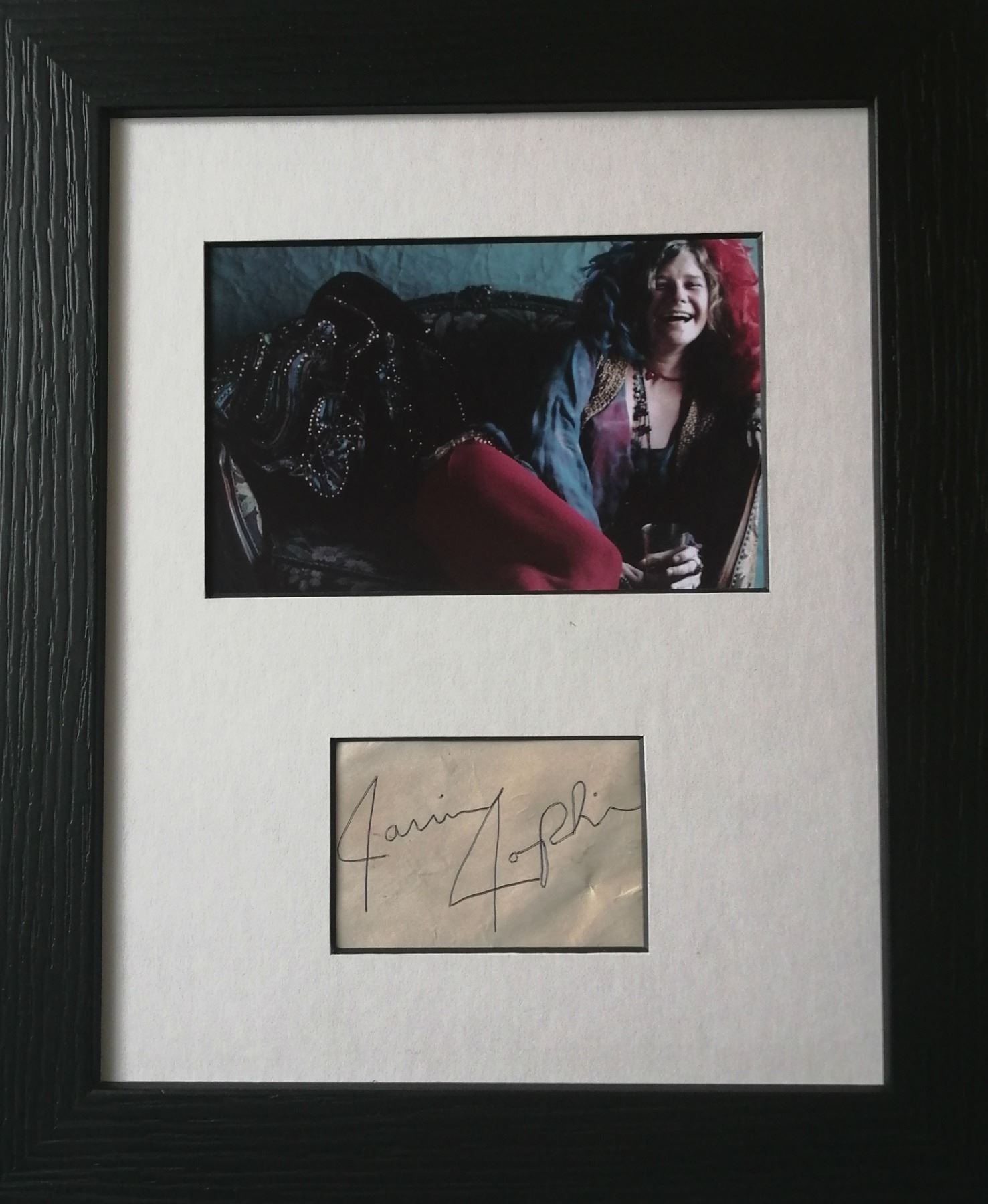 Janis Joplin's autograph is mounted and framed and supplied with coa.