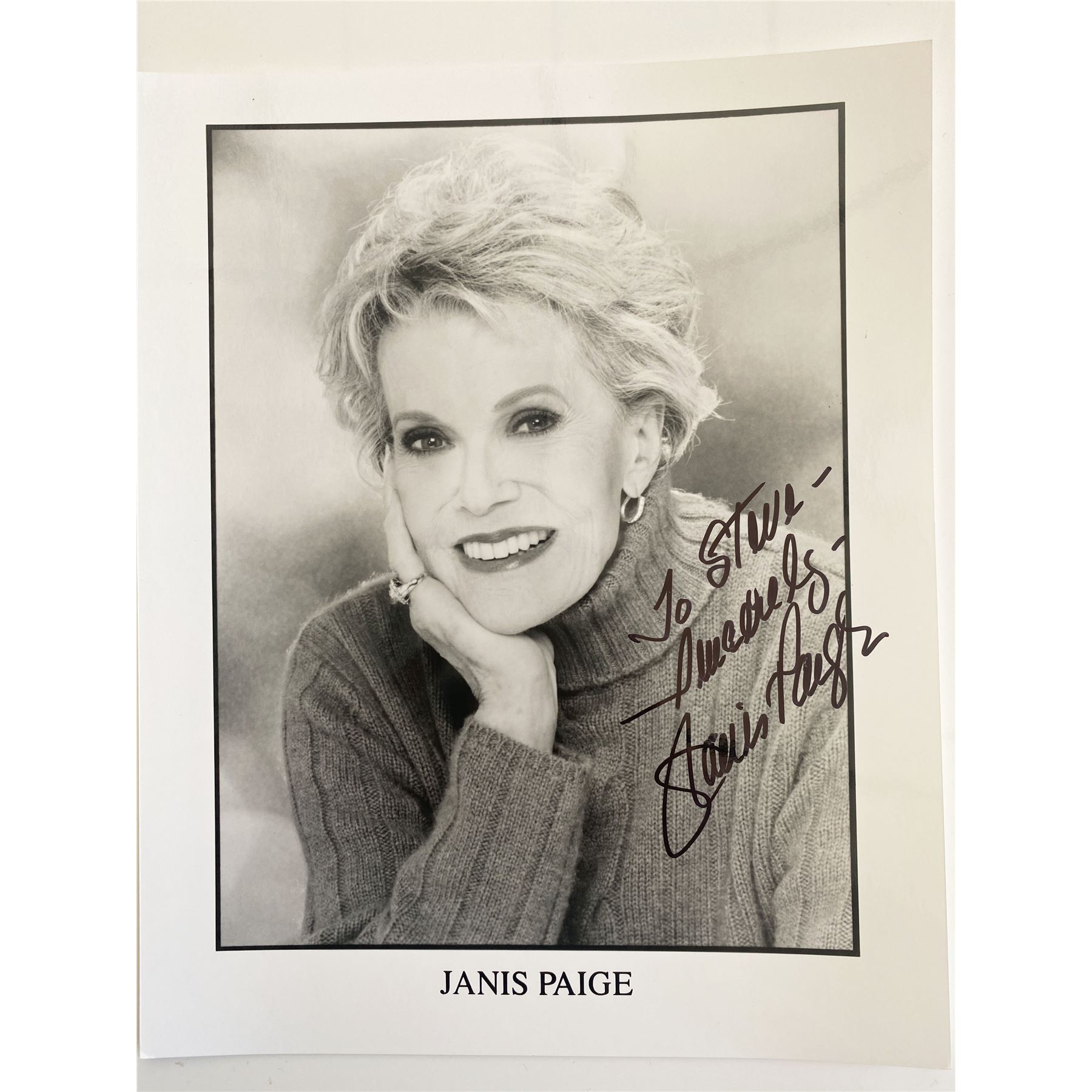 Janis Paige signed black and white photo. 8x10 inches