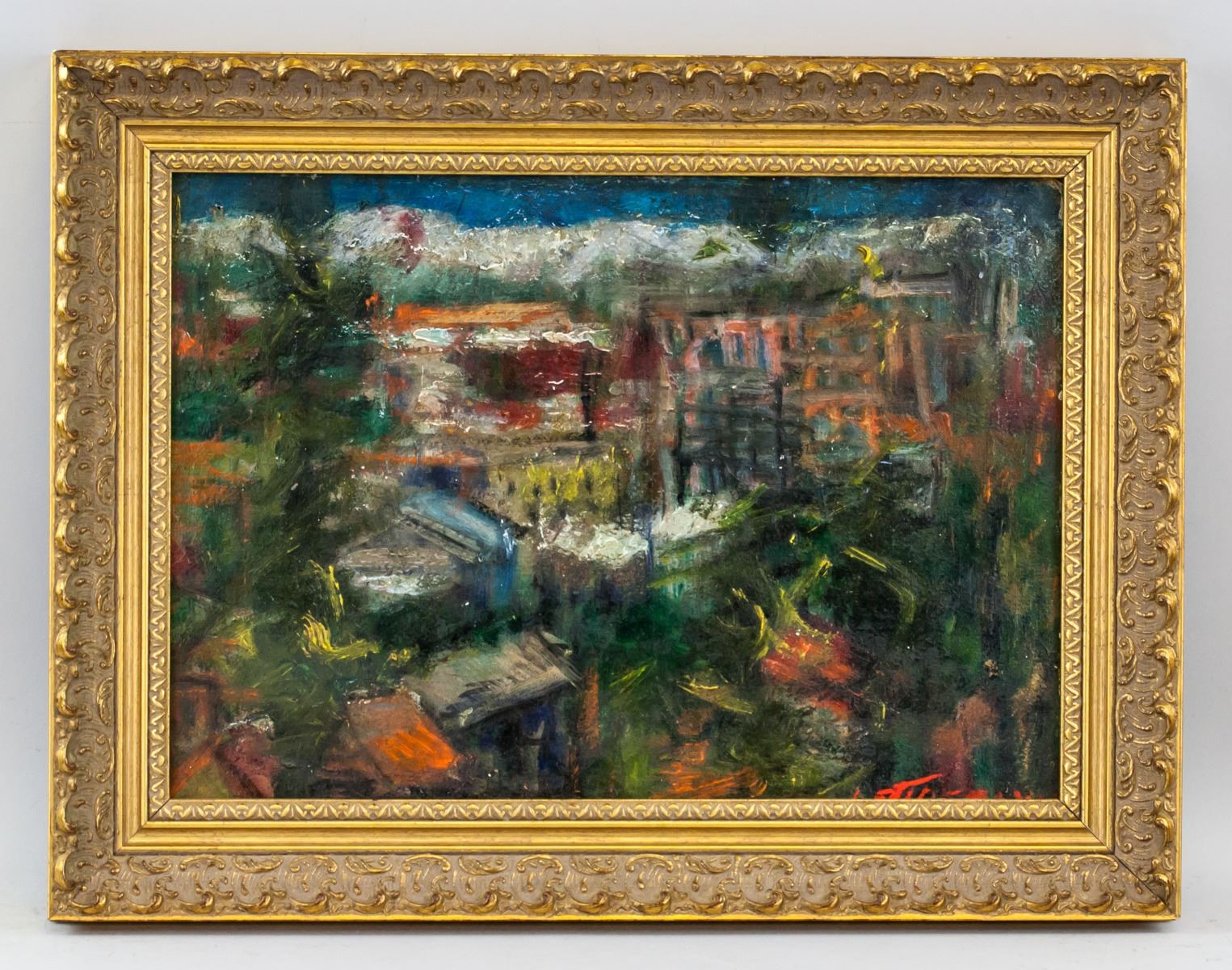 Oil on canvas, framed. Featuring a landscape scene. Signed J. TIDEMANIS on the lower right corner. Attributed to Janis Tidemanis (1897-1964, Latvian). 27.5 x 39 cm (10.8 x 15.4 inches). Framed size: 37 x 48.5 cm (14.6 x 19.1 inches). PROVENANCE: Private American collection (California)