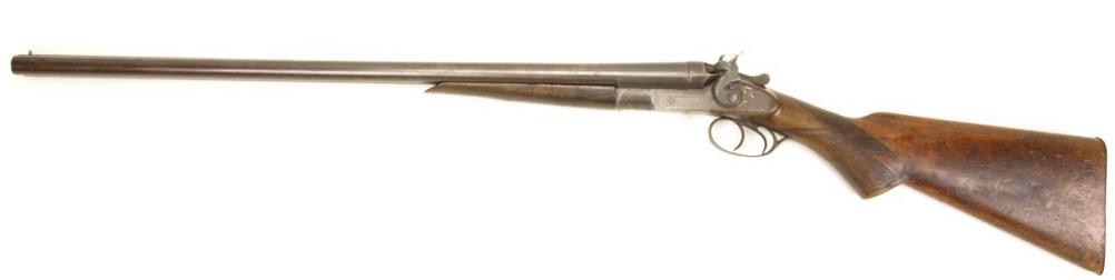 with 24 1/2" barrels and walnut stocks. Left side hammer somewhat crude replacement, actions function with fair bores. NO FFL required.